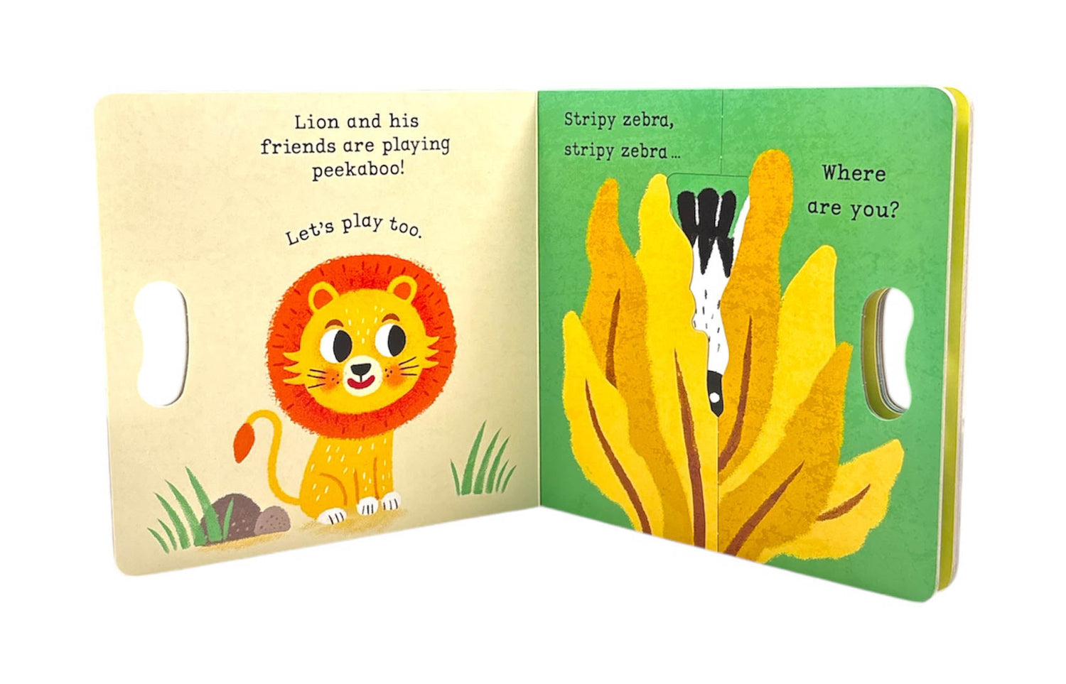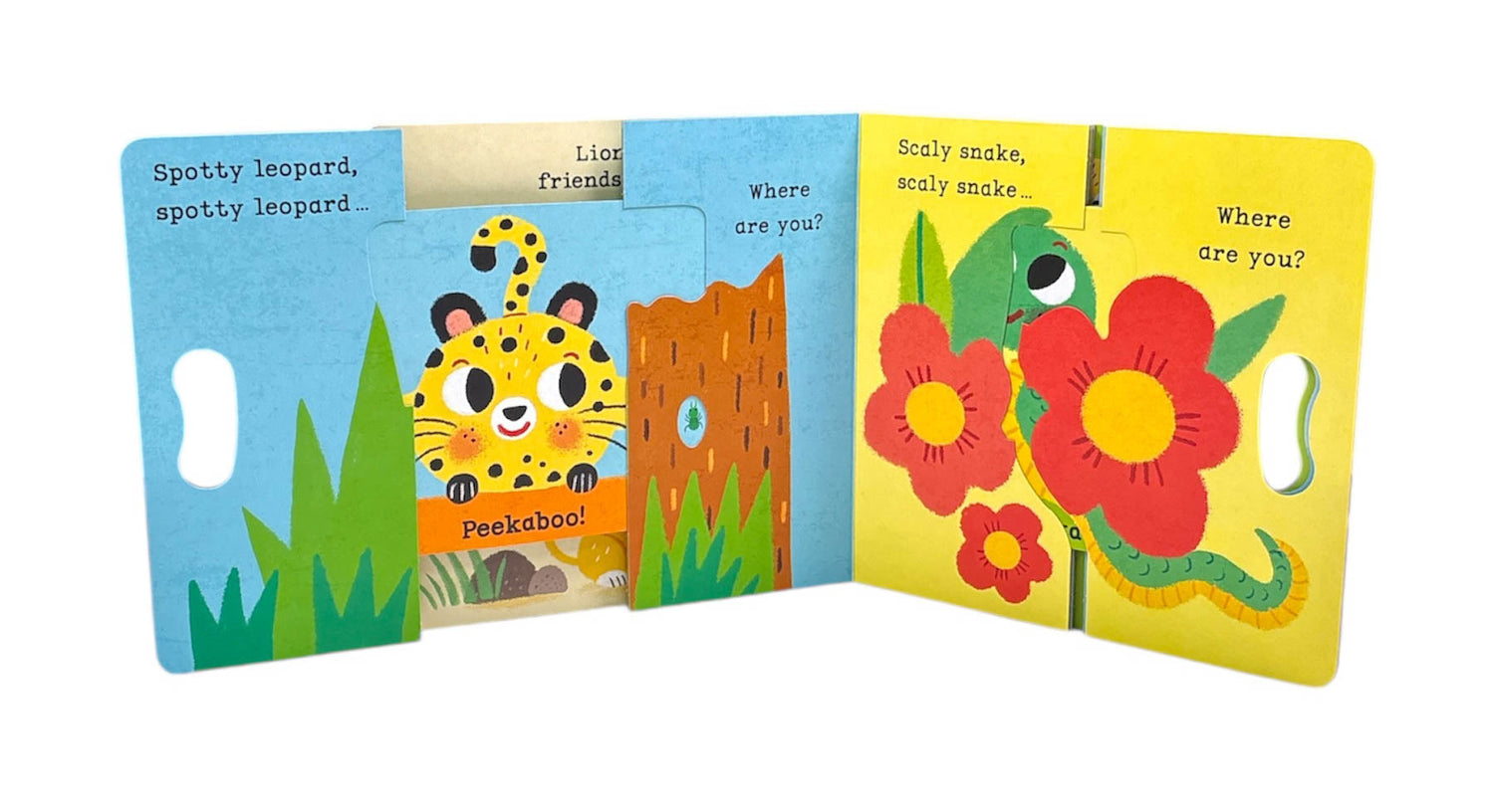 In Lion, Lion, PEEKABOO, babies' favourite game is brought to life with easy grab-and-pull mechanisms and a shiny mirror.