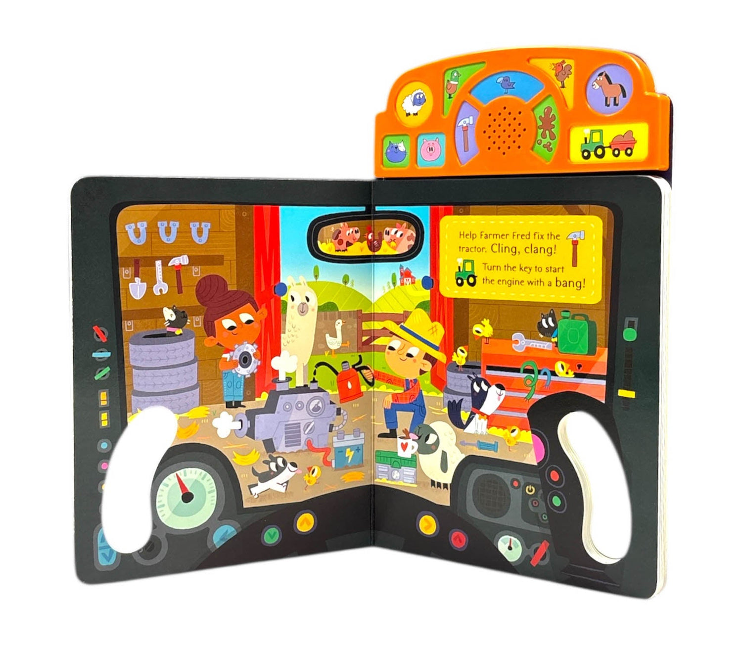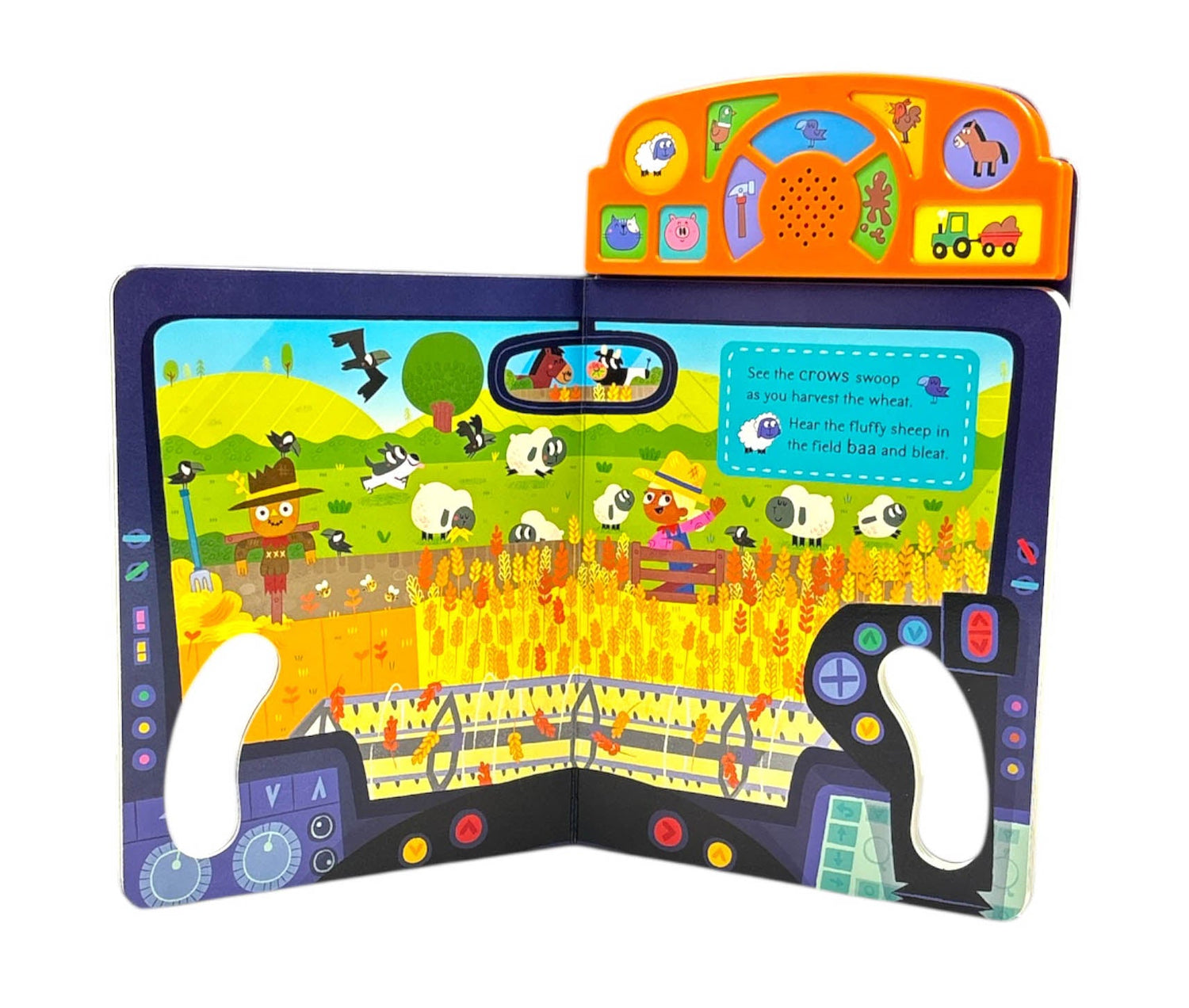 With a fantastic 10-button sound bar and handle-shaped pages, each exciting spread focuses on a different farm vehicle. As well as the die-cut pages, there are two sounds to use on each spread - from a tractor's chugging engine, to the noisy animals on the farm, and much more. The two-line rhymes on each page encourage children to get involved and take on the role of a farmer as they pretend to drive around the farm.