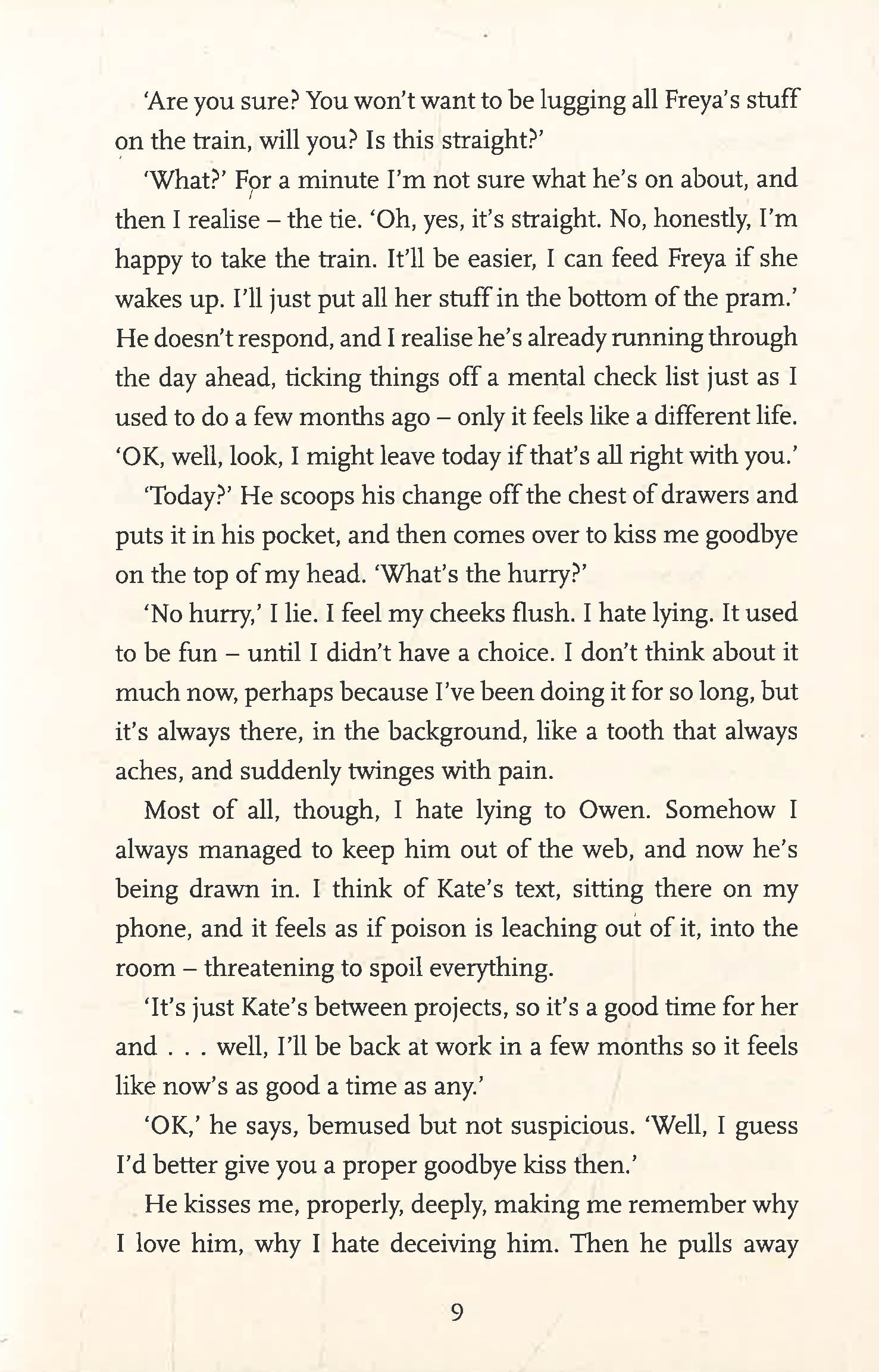 The next morning, three women in and around London'Fatima, Thea, and Isabel'receive the text they had always hoped would NEVER come, from the fourth in their formerly inseparable clique, Kate, that says only, 'I need you."