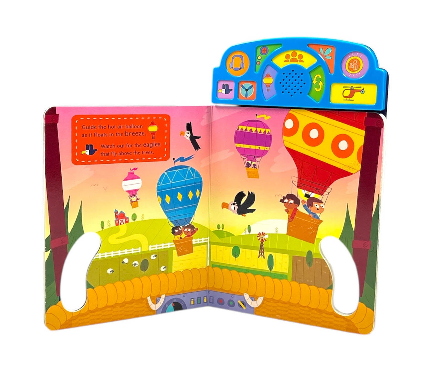 With a fantastic 10-button sound bar and handle-shaped pages, each exciting spread focuses on different vehicles. As well as the die-cut pages, there are two sounds to use on each spread―from an airplane taking off to a stunt plane looping-the-loop, and much more. The two-line rhymes on each page encourage children to get involved and take on the roles of a pilot and astronaut as they fly through the sky.