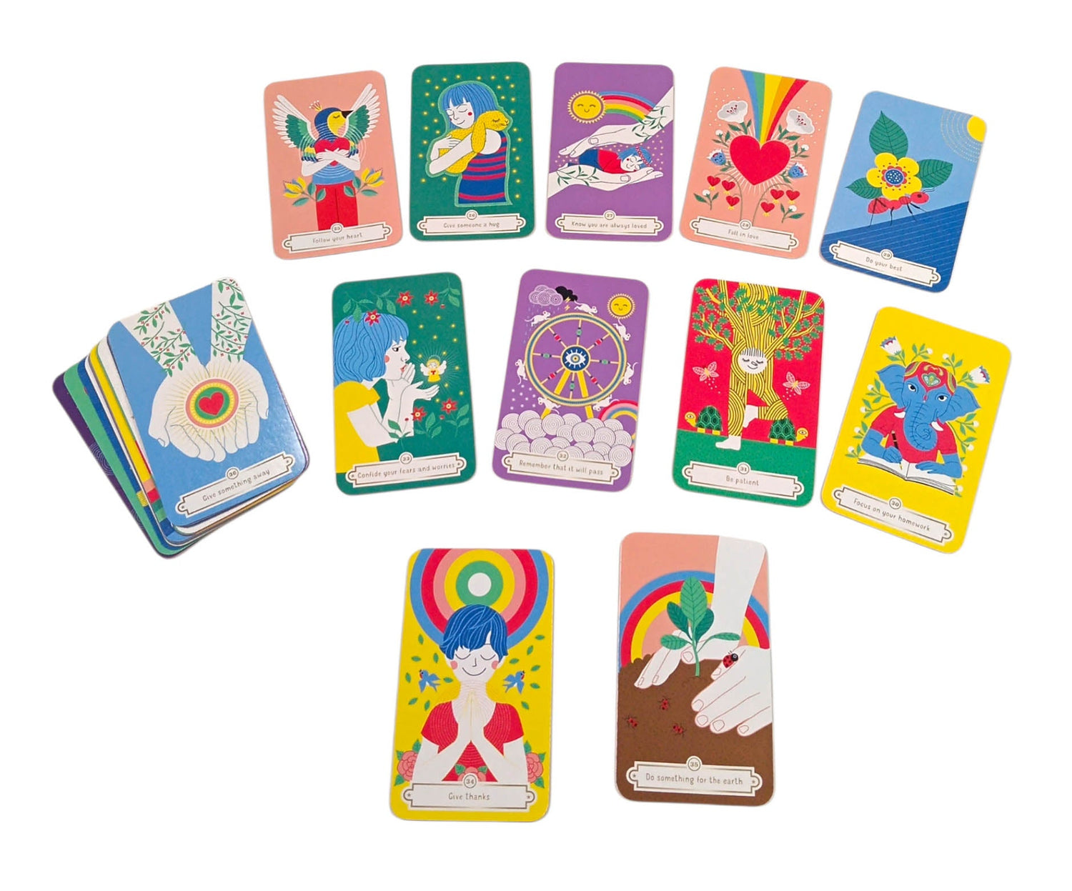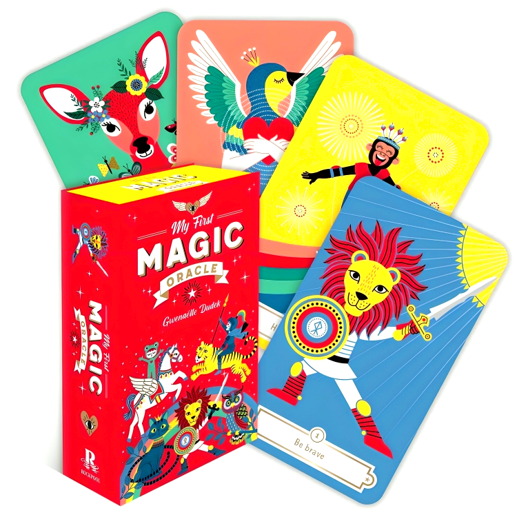 On each card there are cute images along with encouraging messages in each card description in the guidebook. These cards don't predict the future, but they help your child know themselves better and find the necessary resources to better live. In this oracle, the cards will often mention "magical friends". These friends can take on any form that feels right. They represent an invisible force that you can feel around or inside you. That force can be the Spirit of Nature, for instance, or an extraordinary animal, a fantastic creature, an angel, or a powerful invisible force such as the Universe.