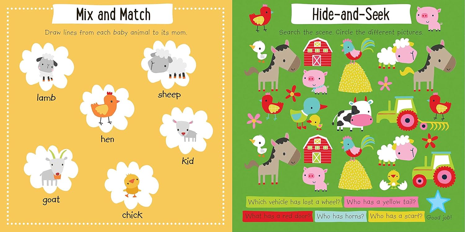 Whether it's an adorable cow, a playful sheep, or a happy pony, Super Sticker Activity: Farm is full of cute farm animals and delightful activities for kids. This 32-page activity book is full of engaging activities, like matching, spot the differences, and search and find, with colorful illustrations on each page. Mix and match, doodle, color, or fill the pages with the included 75+ puffy stickers. Super Sticker Activity: Farm provides hours of creative fun down on the farm.