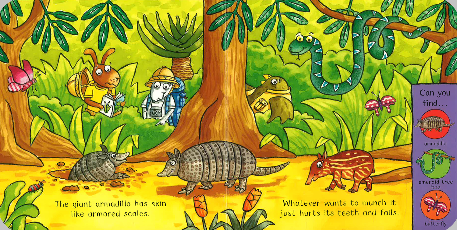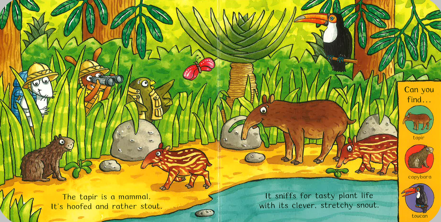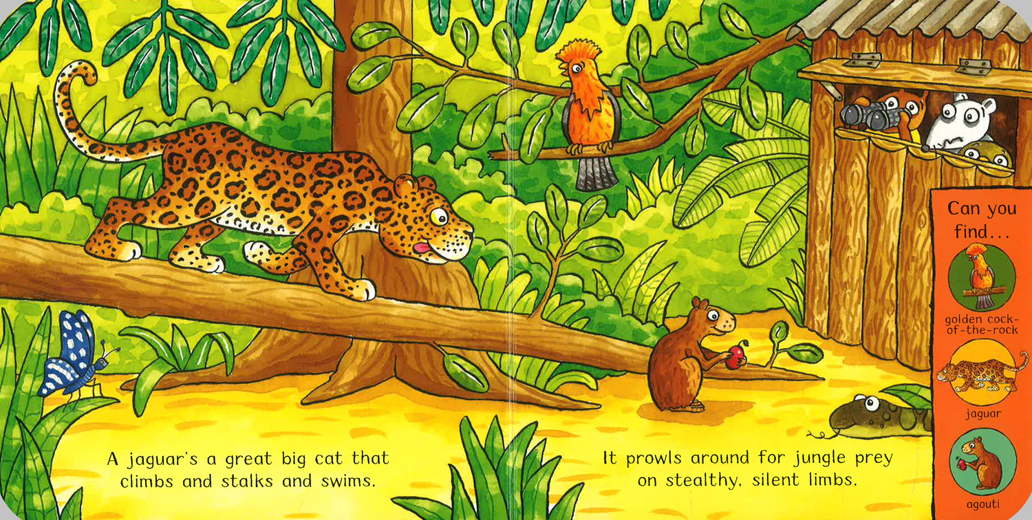 From spider monkeys swingling through the trees to a silky anteater on the prowl for a tasty meal, there's a different animal on every spread, plus many additional creatures to spot along the way!
