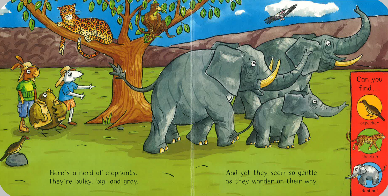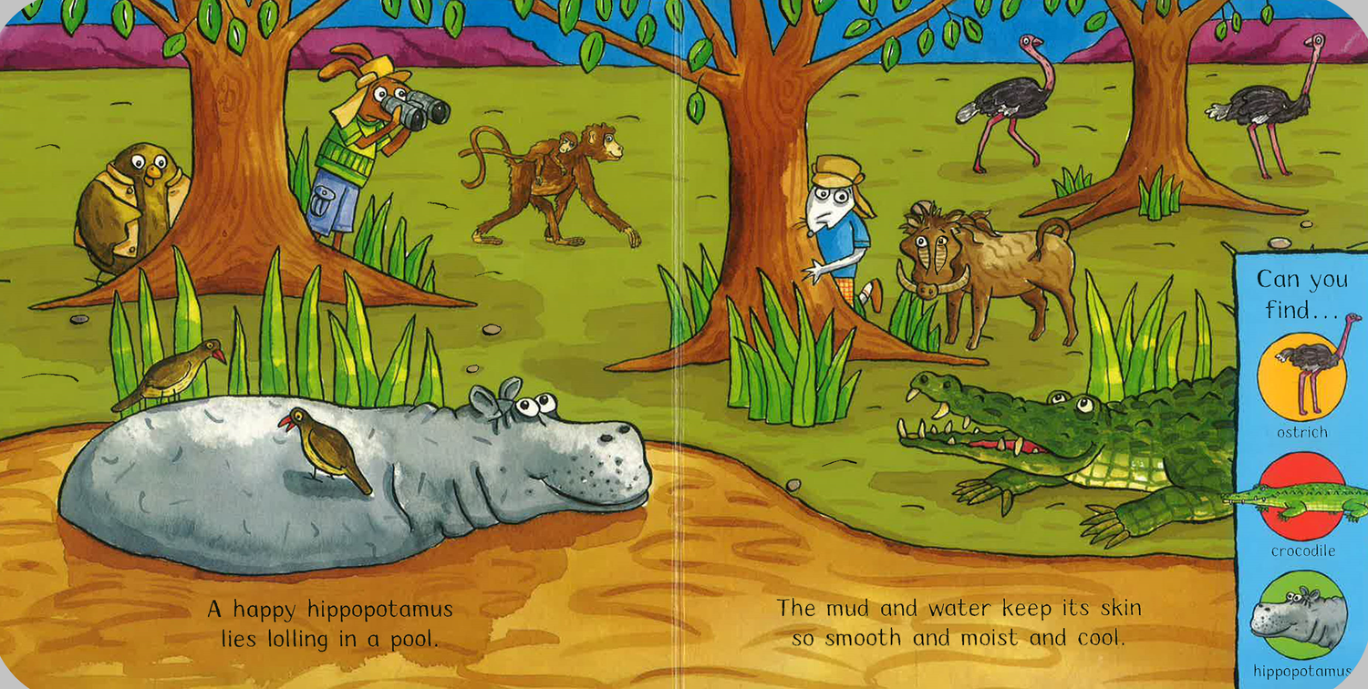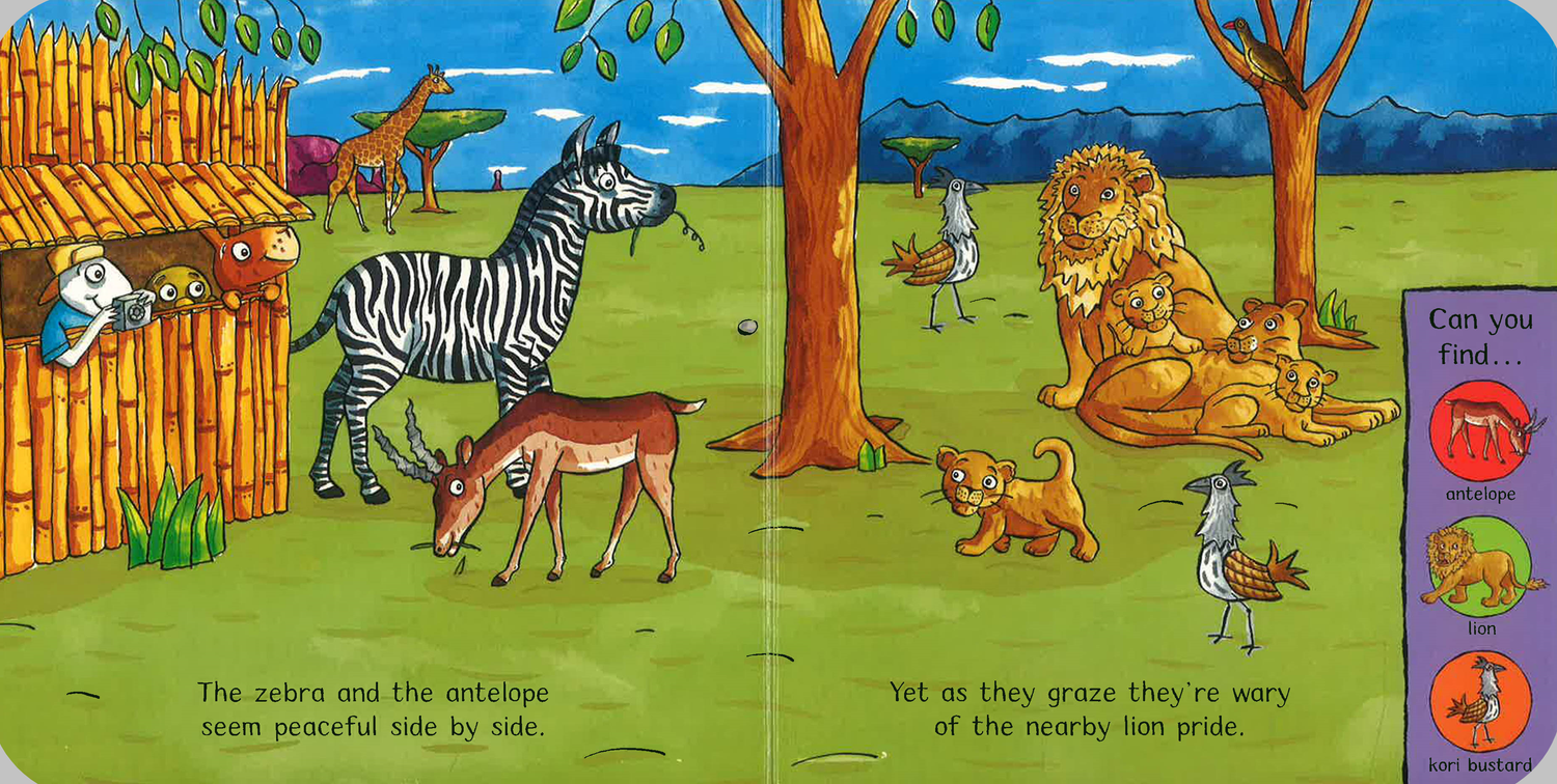 From enormous elephants to lazy lions, there's a different animal on every spread, plus many additional creatures to spot along the way!