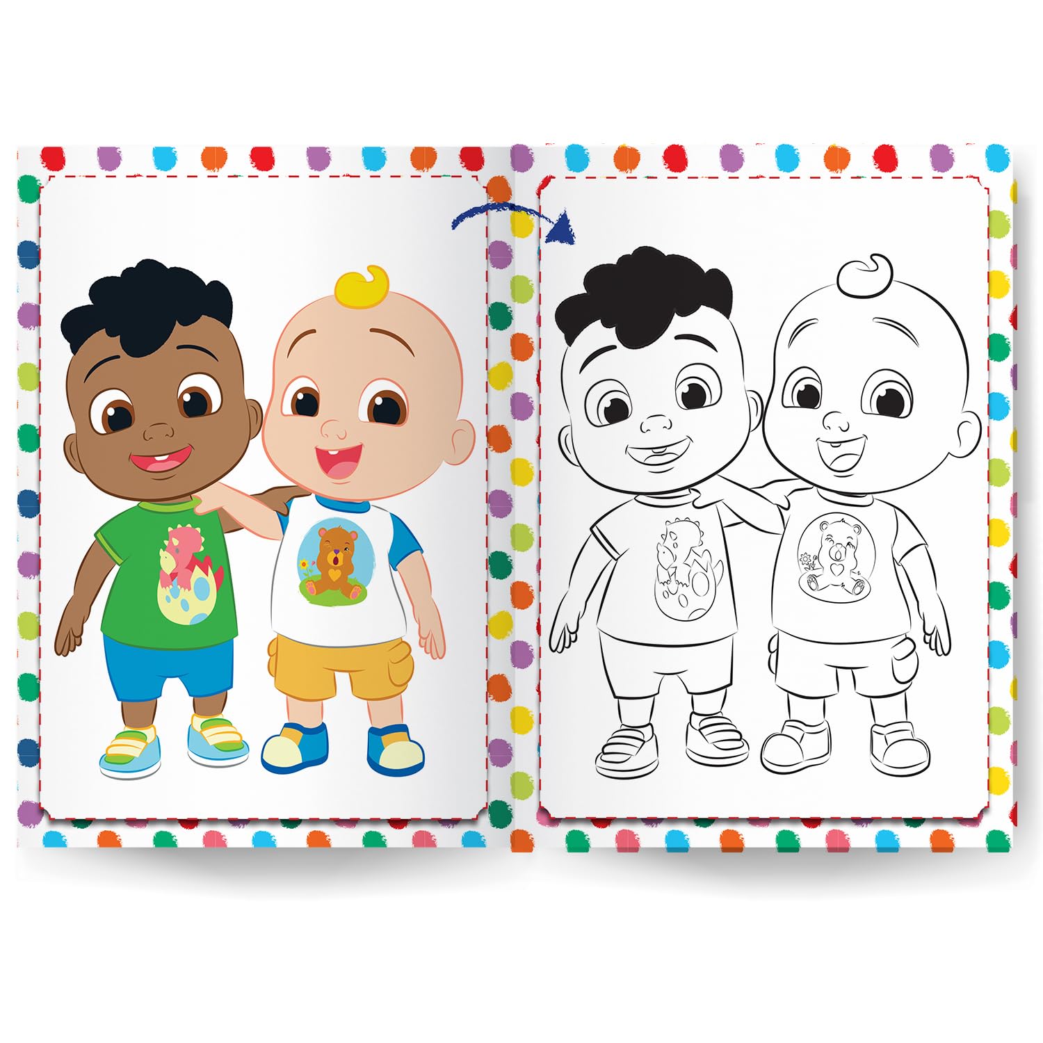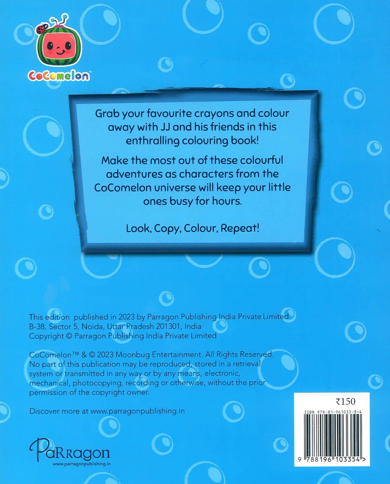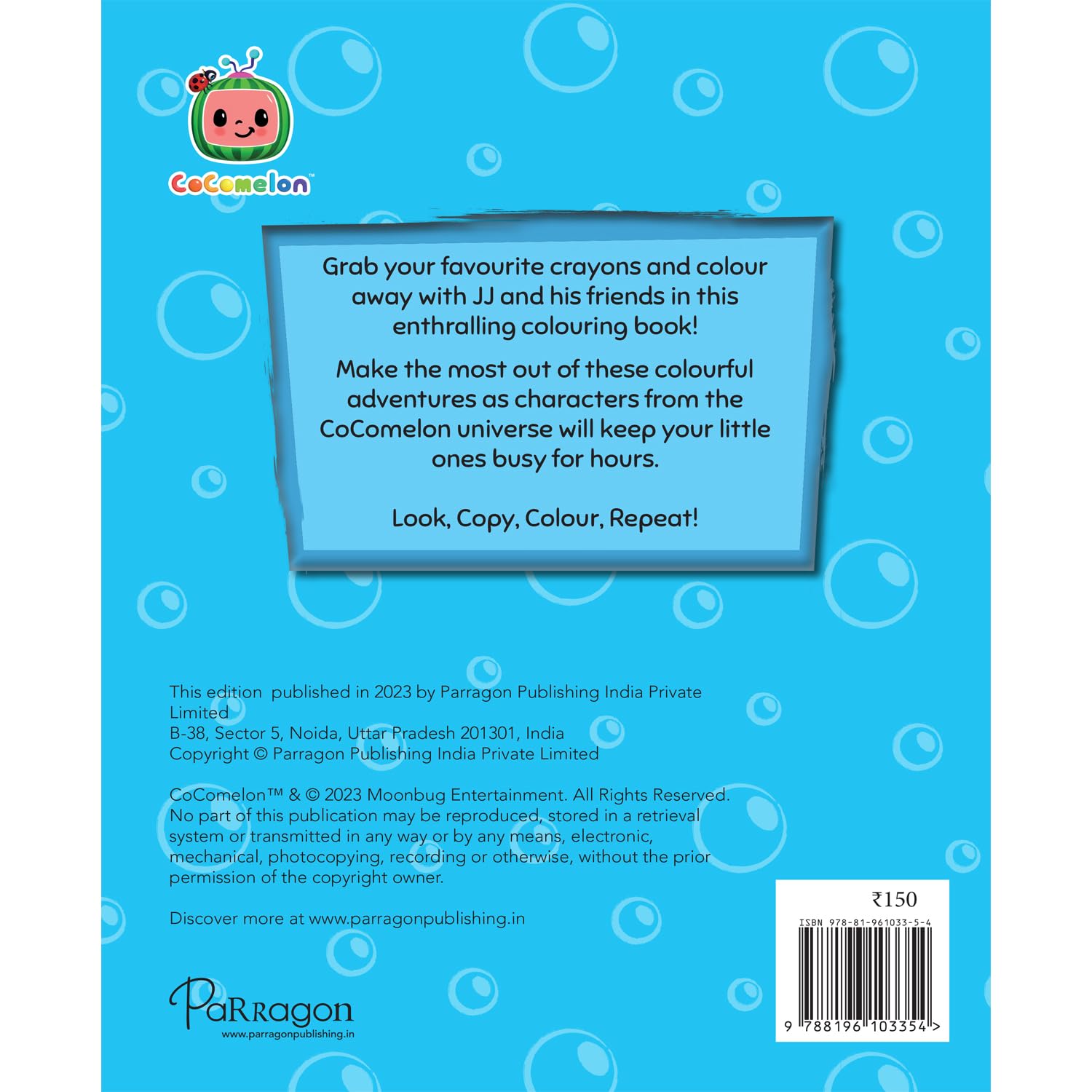 Grab your favourite crayons and colour away with JJ and his friends in this enthralling colouring book! Make the most out of these colourful adventures as characters from the CoComelon universe will keep your little ones busy for hours. Look, Copy, Colour, Repeat!