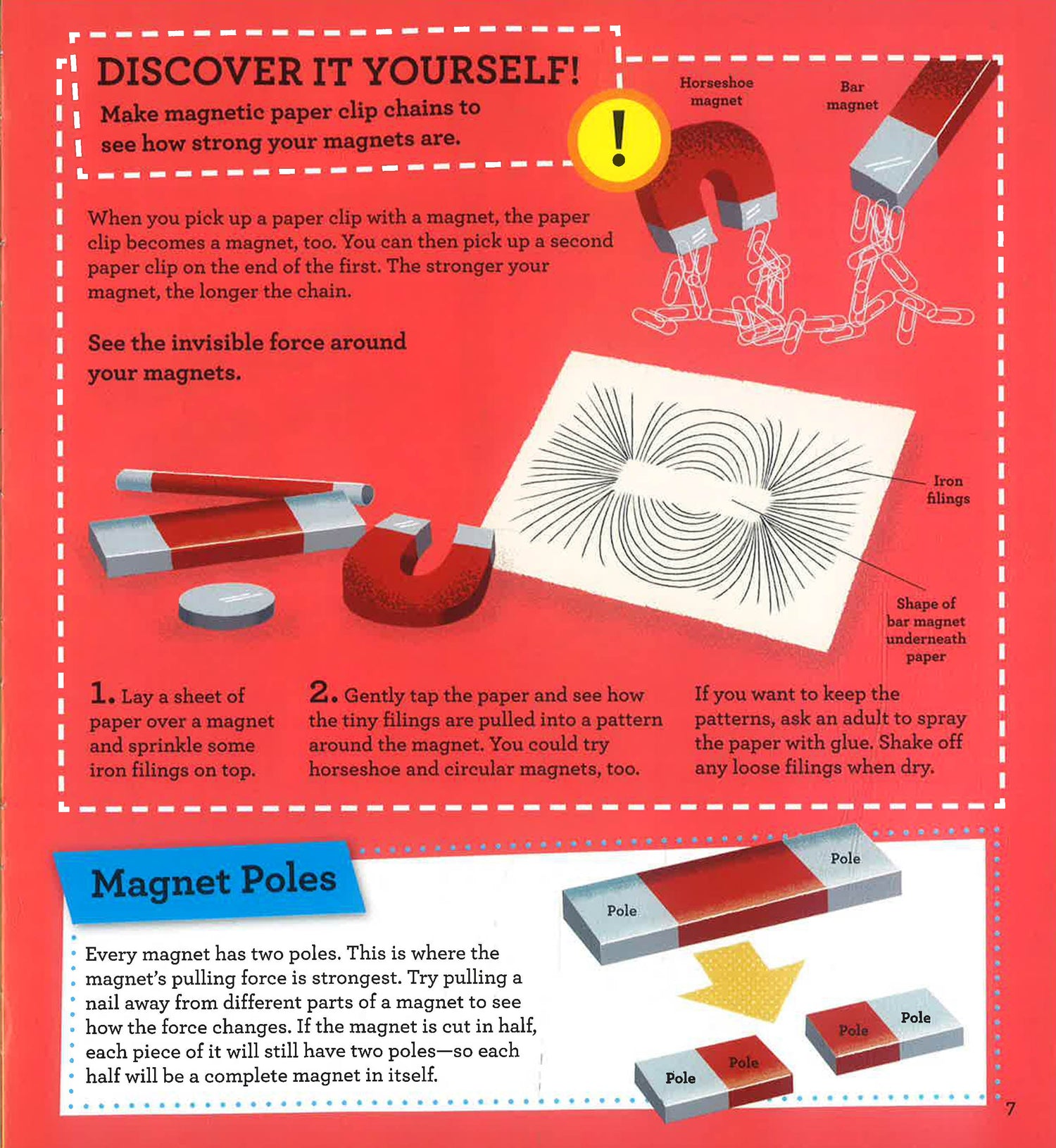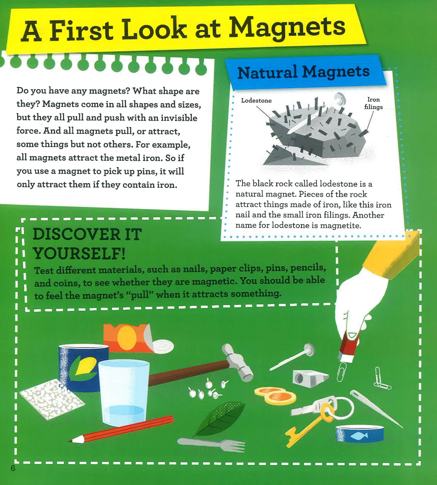 Keen scientists can discover how magnets work, what makes a conductor or insulator, and how electricity is helping environment. After learning the essential key facts, children can find almost everything they need for the corresponding experiments around the home, with the materials and instructions simply, safely and clearly presented. Written by David Glover, this STEM-focused book will show readers how to levitate a paperclip, make a buzzer game, create an electric circuit, make a compass, and much more.