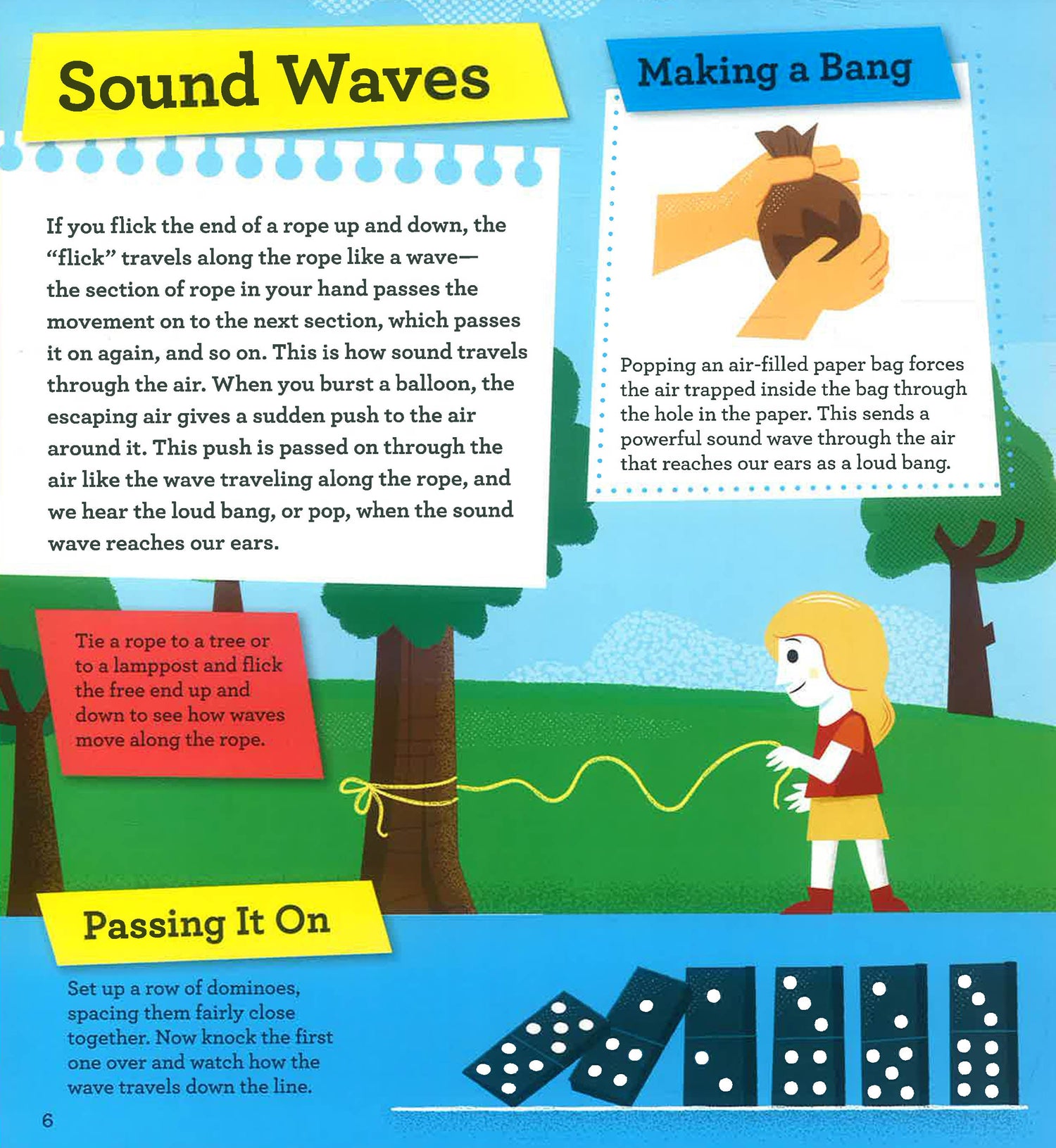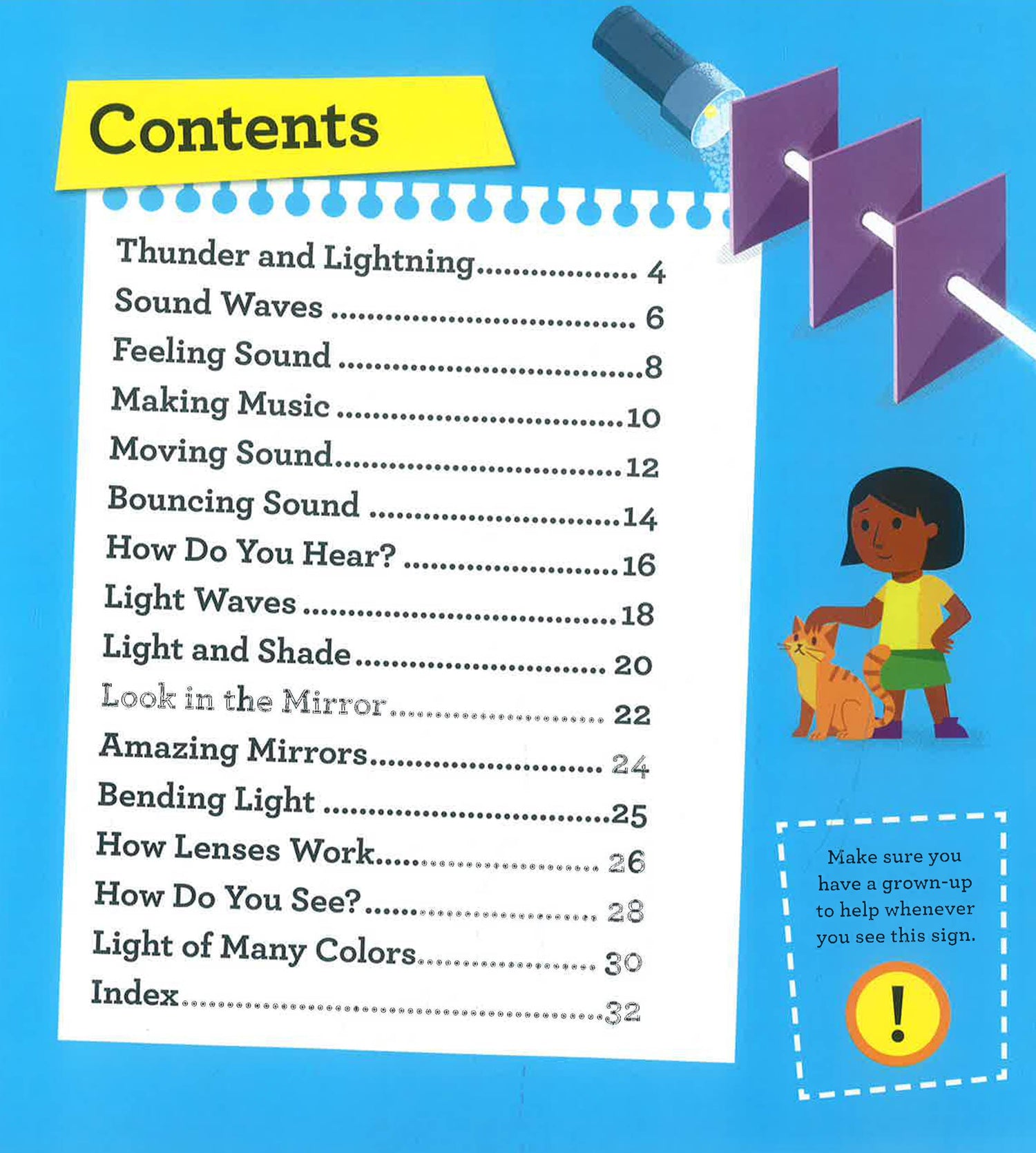 Keen scientists can discover why thunder and lightning occur, how vibrations are made, and who can see in the dark. After learning the essential key facts, children can find almost everything they need for the corresponding experiments around the home, with the materials and instructions simply, safely and clearly presented. Written by David Glover, this STEM-focused book will show readers how to make a sound amplifier, create a rainbow, make a periscope, deisgn your own musical instruments, and much more.