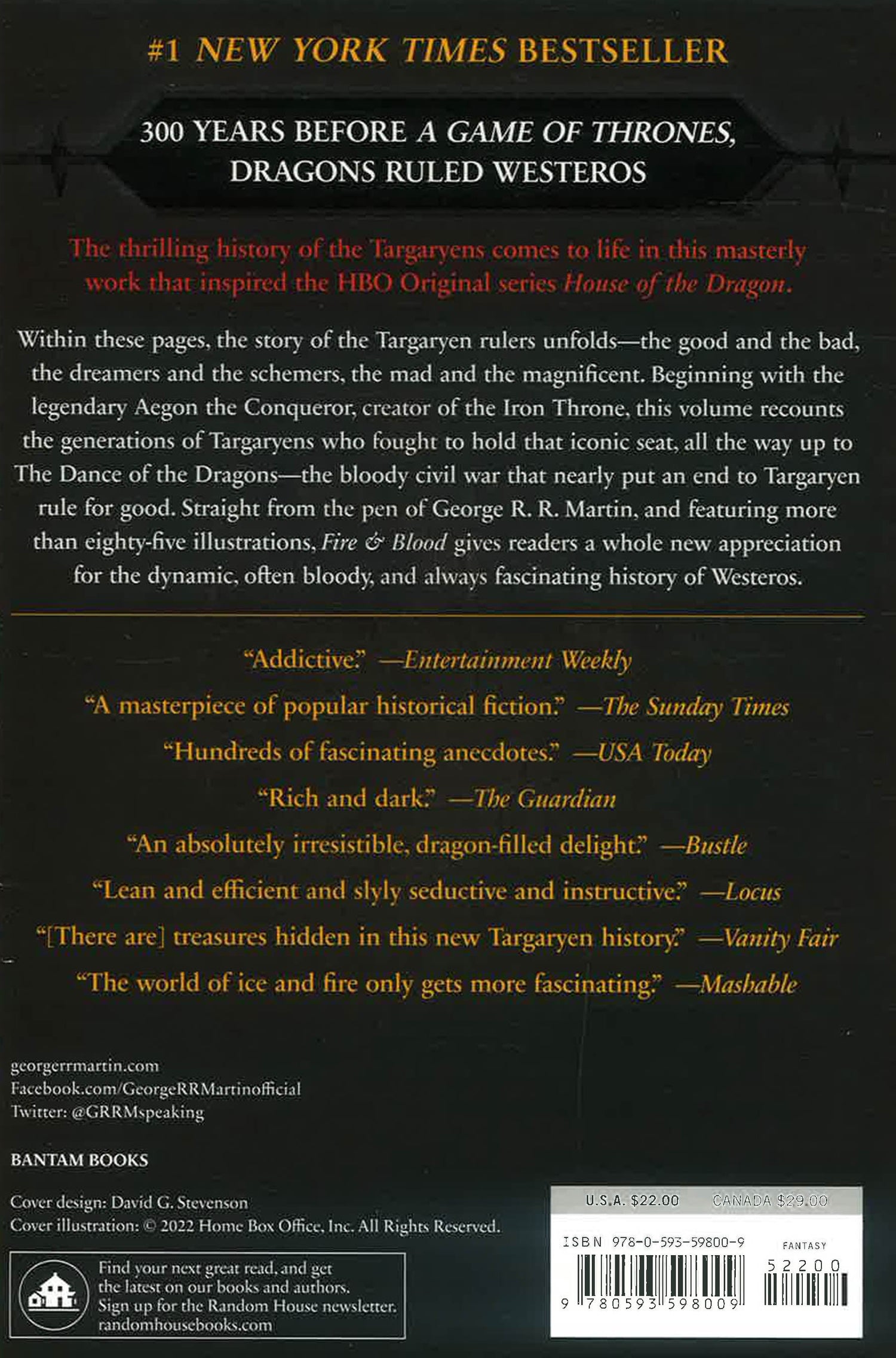 “The thrill of Fire & Blood is the thrill of all Martin’s fantasy work: familiar myths debunked, the whole trope table flipped.”—Entertainment Weekly