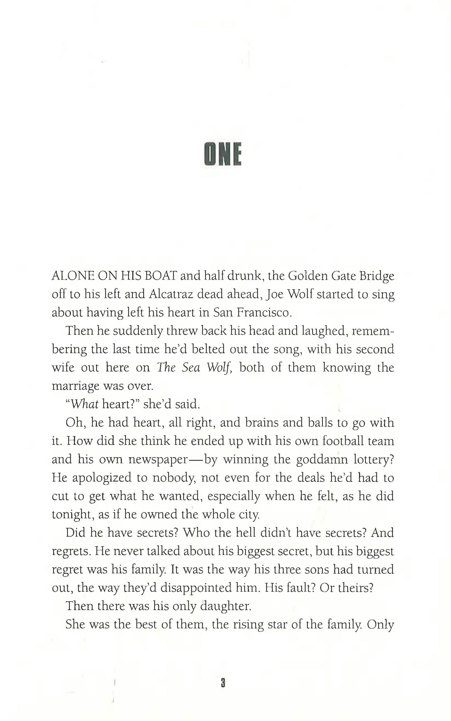 When Joe's body is discovered adrift in the San Francisco Bay, his daughter Jenny finds herself head of the Wolf empire.