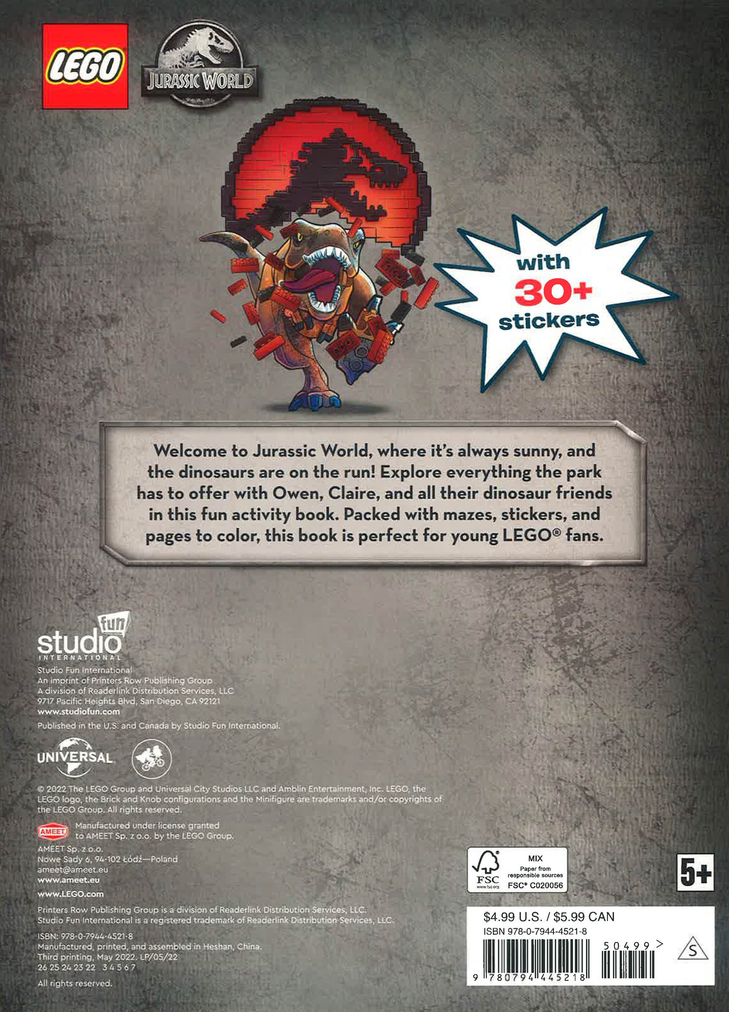 Welcome to Jurassic World(TM), where it’s always sunny, and the dinosaurs are on the run! Explore everything the park has to offer with Owen, Claire, and all their dinosaur friends in this fun activity book. Packed with mazes, stickers, pages to color, and more, this book is perfect for young LEGO(R) fans.