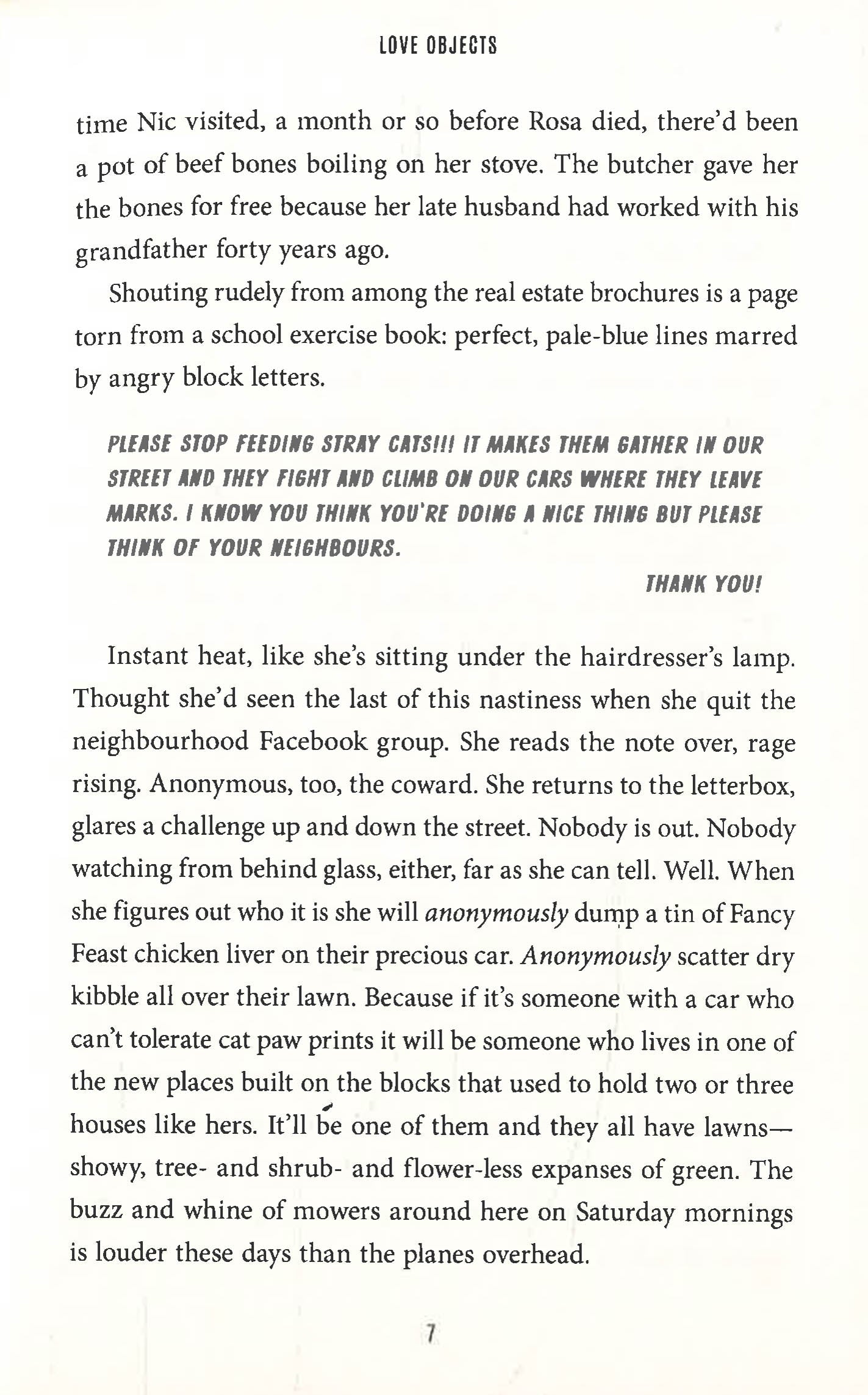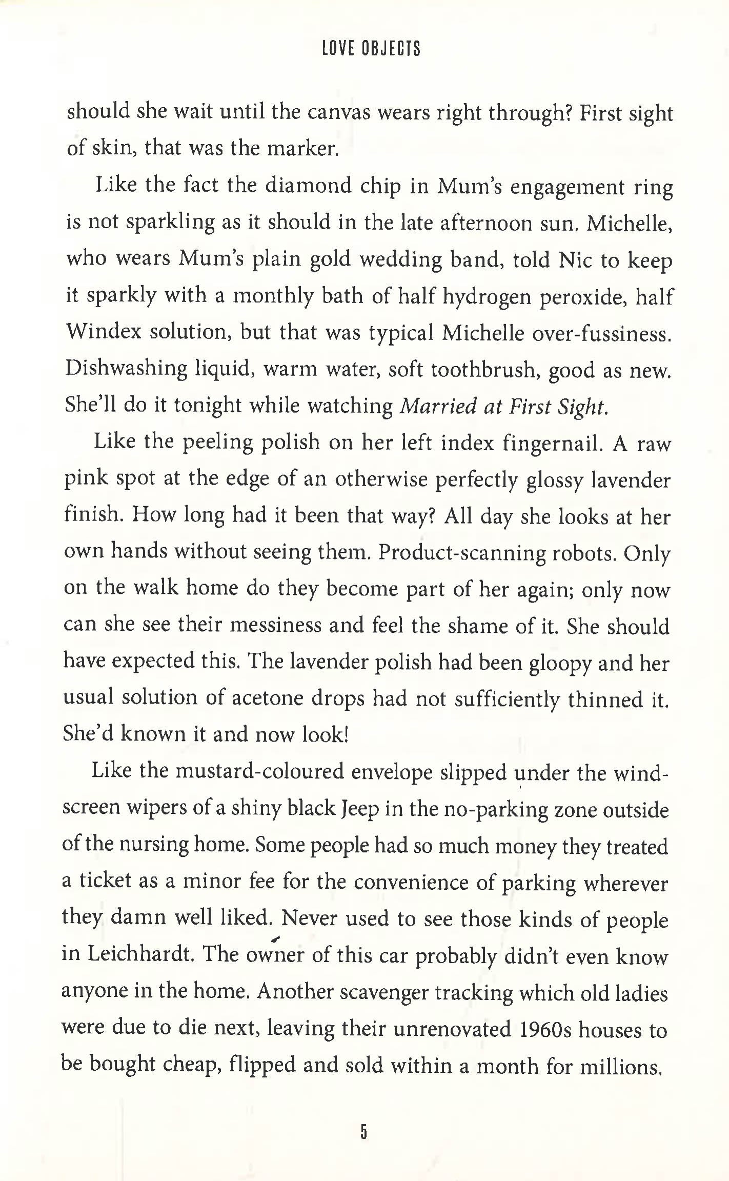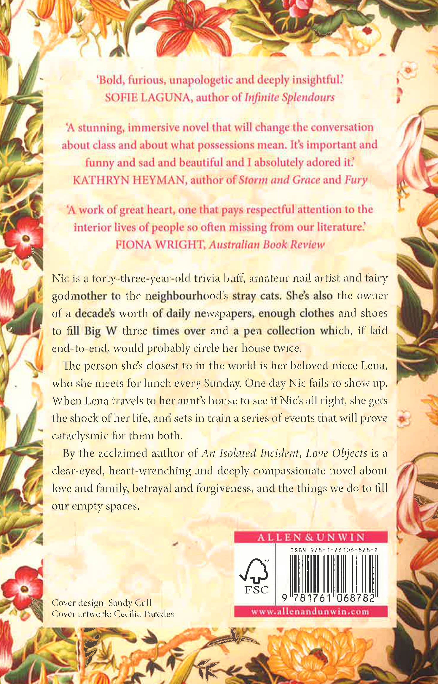 A stunning, simply told story of great compassion and insight, from the author of the Stella Prize-shortlisted An Isolated Incident. Nic is a forty-five-year-old trivia buff, amateur nail artist and fairy godmother to the neighbourhood's stray cats. She's also the owner of a decade's worth of daily newspapers, enough clothes and shoes to fill Big W three times over and a pen collection which, if laid end-to-end, would probably circle her house twice. She'd put her theory to the test, if only the pen buckets weren't currently blocked in by the crates of Happy Meal toys and the towers of Vegemite jars, take-away containers and cat food tins.Nic's closest relationship is with her niece Lena. The two of them meet for lunch every Sunday to gossip about the rest of the family and bitch about work (they're both checkout Lena just for now, Nic until they prise her staff discount card from her cold, dead hands).One Sunday, Nic fails to turn up to lunch and when Lena calls she gets a disconnection message. Arriving at the house she hasn't visited in years ('Too far for you to come, hon. Let's meet in the middle.') she finds her aunt unconscious under an avalanche of stuff.Lena is devastated that her beloved aunt has been living in such squalor all this time. While Nic is in hospital, she gets to work cleaning things up for her. Her first impulse is to call in the bulldozers and start searching Gumtree for a roomy caravan. But with the help of her reluctantly recruited brother, Will, she gets the job done.This heroic effort is not appreciated by the plastered up, crutch-wielding Nic. She returns to an empty, alien place unrecognisable as her home and the unbearable pity of her family who have no idea what they've destroyed. How can she live in this place without safety and peace? And how can she ever forgive the niece who has betrayed her?
