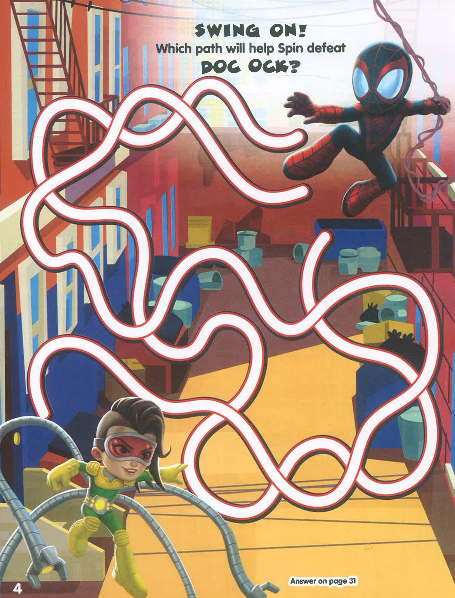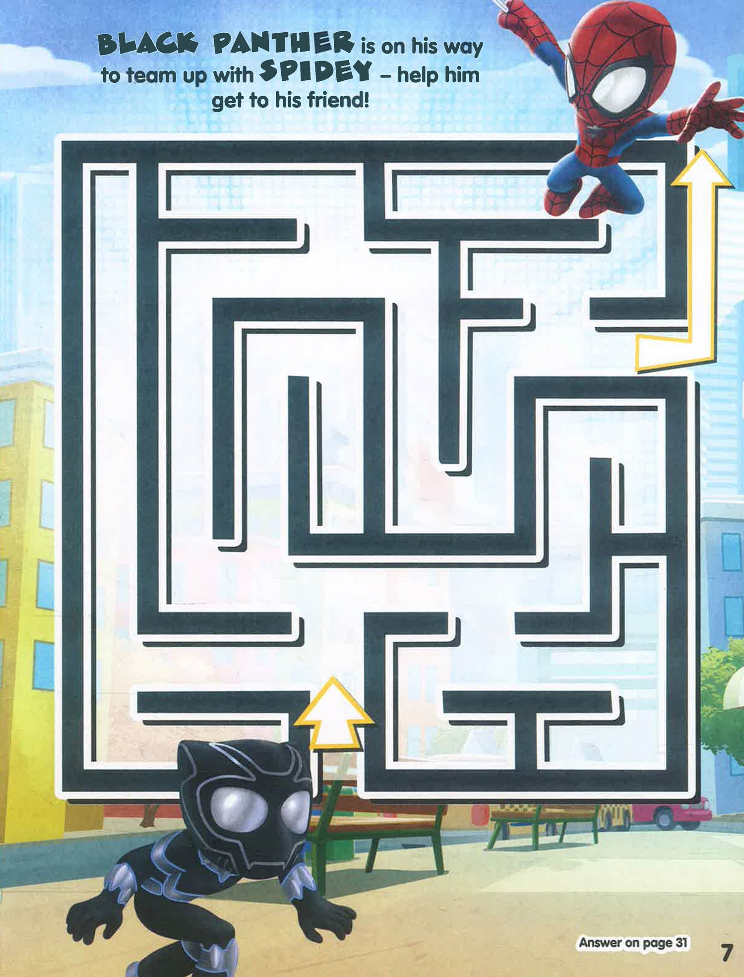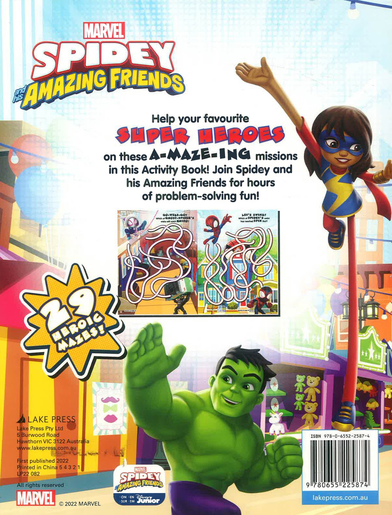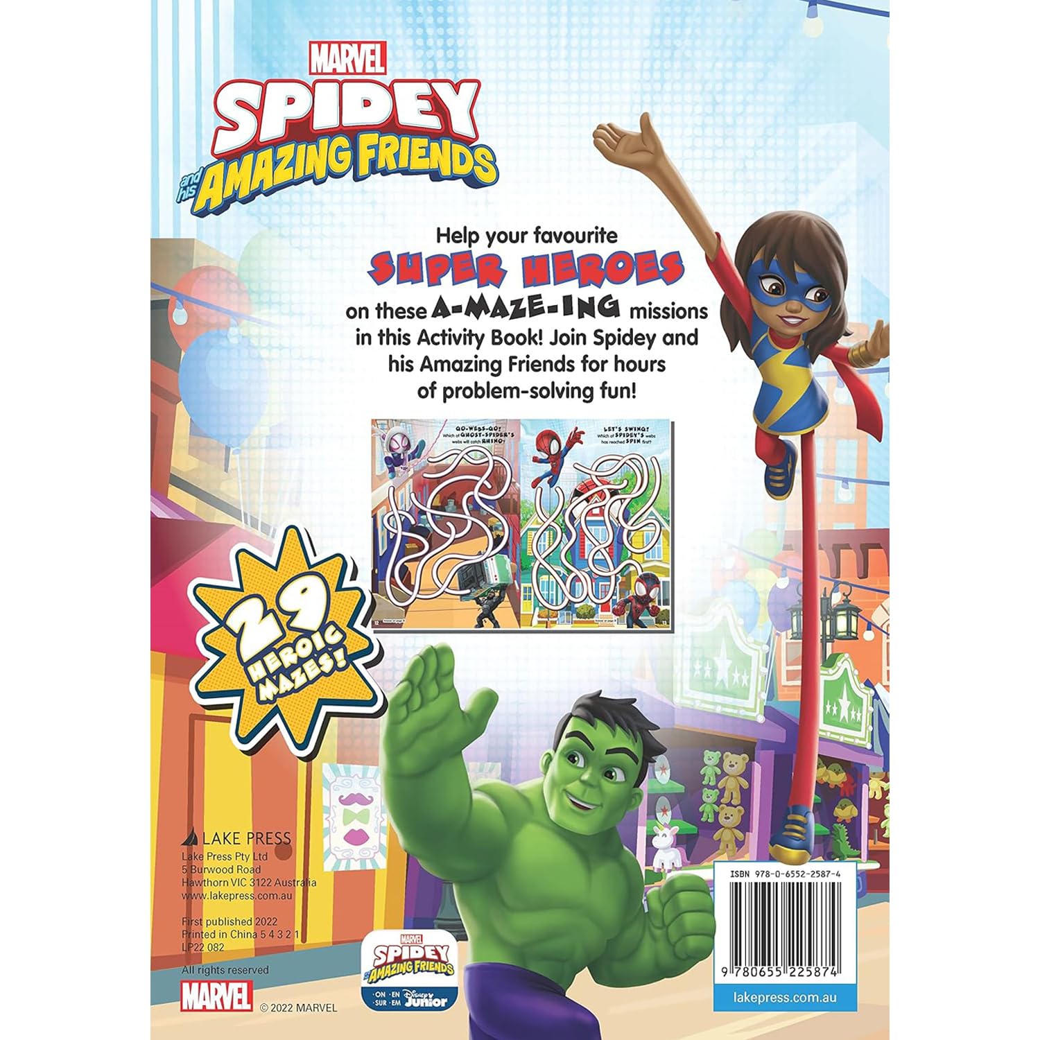 Join Spidey, Spin, Ghost-Spider and their friends as they find their way through 29 mazes! Kids will love these SUPER challenges and boost their problem-solving and fine-motor skills in the process.