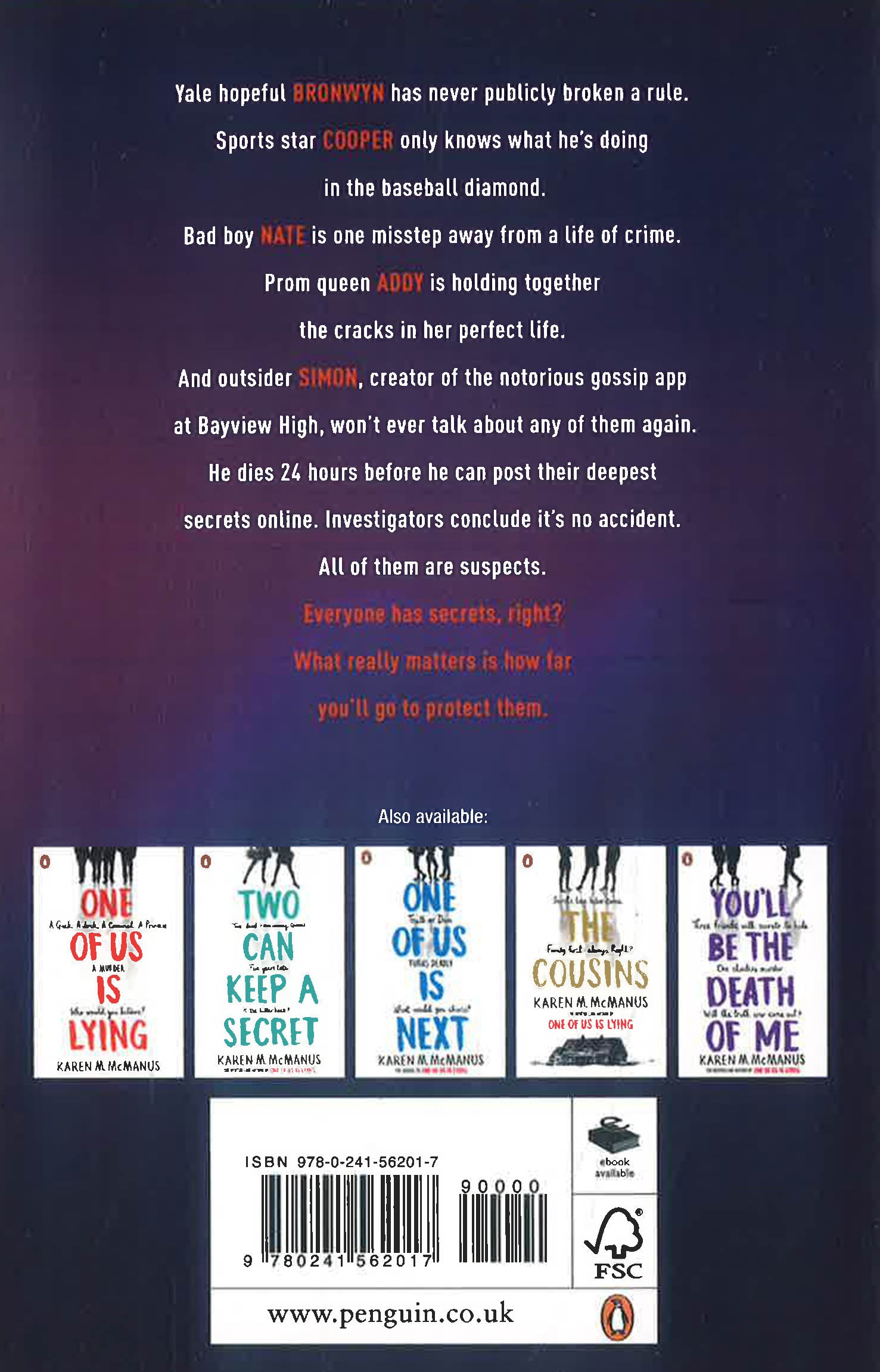 The international bestselling YA thriller by acclaimed author, Karen M. McManus - NOW A MAJOR NETFLIX SERIES.