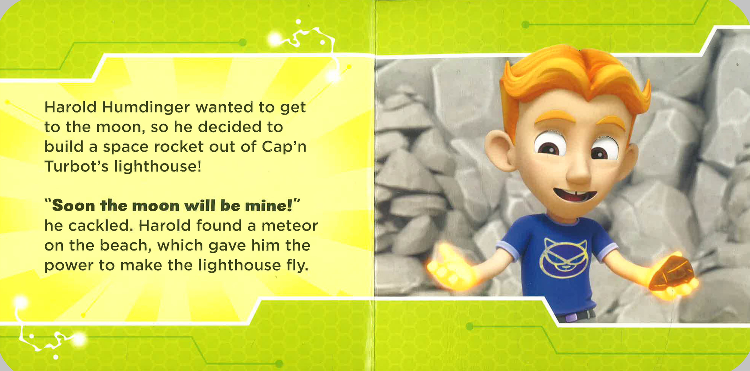 When Mayor Humdinger’s nephew Harold found a piece of meteor, he turned the lighthouse into a rocket. Poor Cap’n Turbot is stuck inside and in need of a mighty rescue!