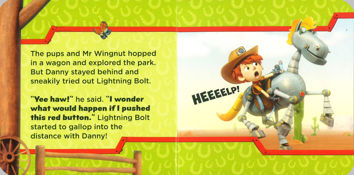 The pups and Daring Danny X are spending the day at the Wingnuts Wild West Pony Park. But when Danny hops on a special robo-horse, it gets out of control and gallops off into the distance!