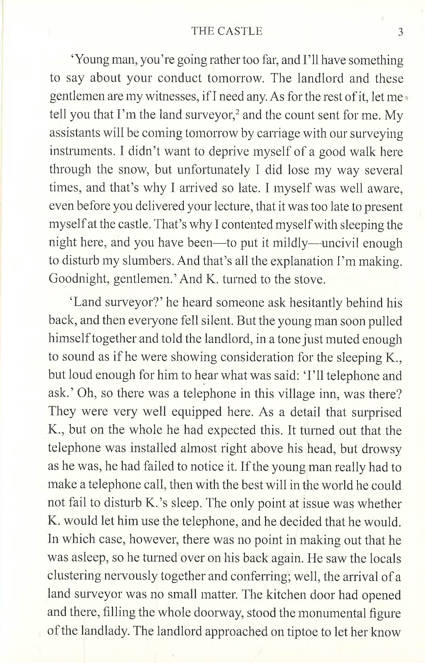 The Castle by Franz Kafka is a haunting and enigmatic novel that delves into the complexities of power, isolation, and the search for meaning. The story follows K., a land surveyor who arrives in a mysterious village only to find himself locked out of the elusive castle that governs the town. As he struggles to navigate the opaque systems of control and authority, Kafka's exploration of existential uncertainty and the absurdity of bureaucratic structures becomes an unforgettable commentary on the human condition.