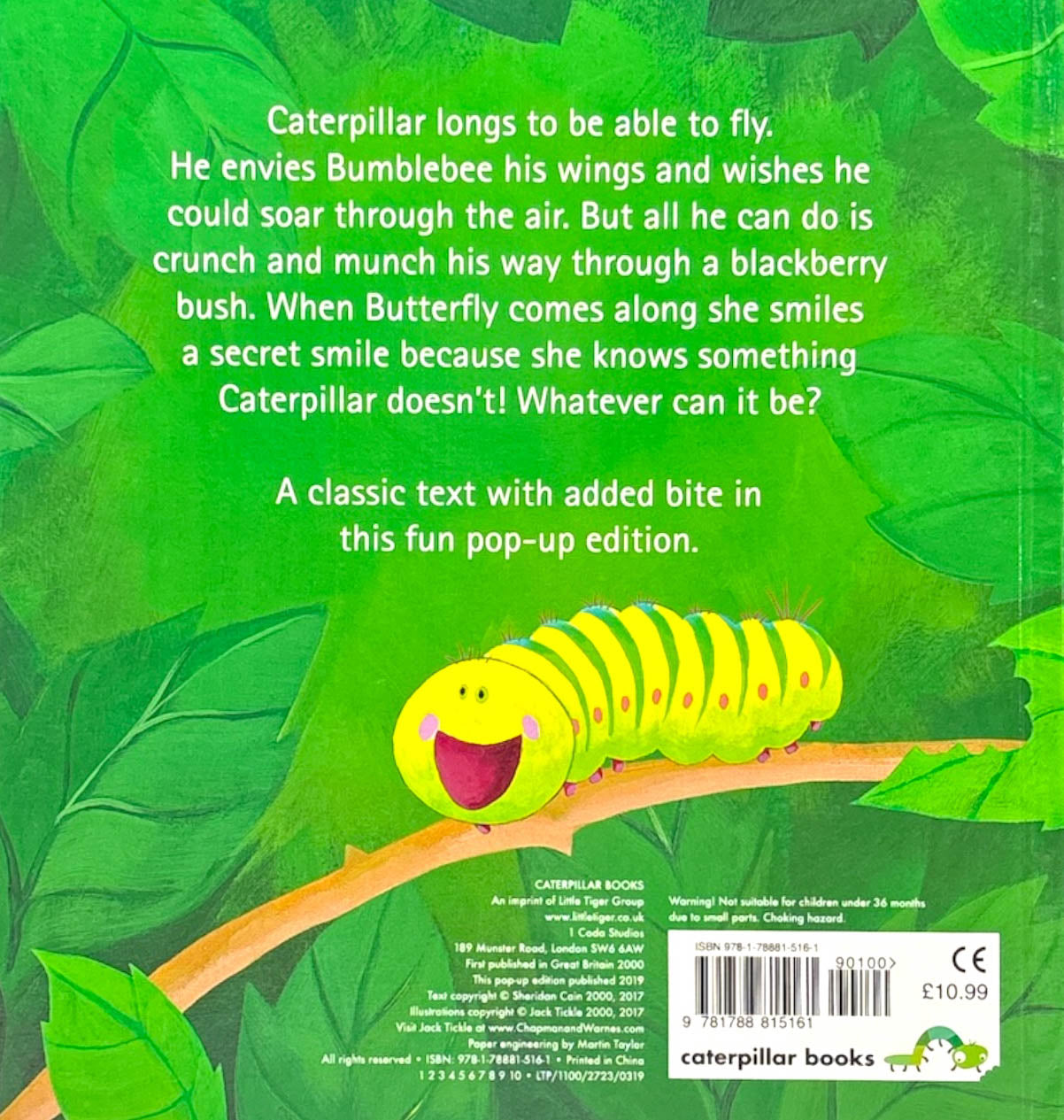 Caterpillar longs to be able to fly! But all he can do is munch and crunch his way through a blackberry bush. When Butterfly comes along, she smiles a secret smile because she knows something Caterpillar doesn't! Whatever can it be?