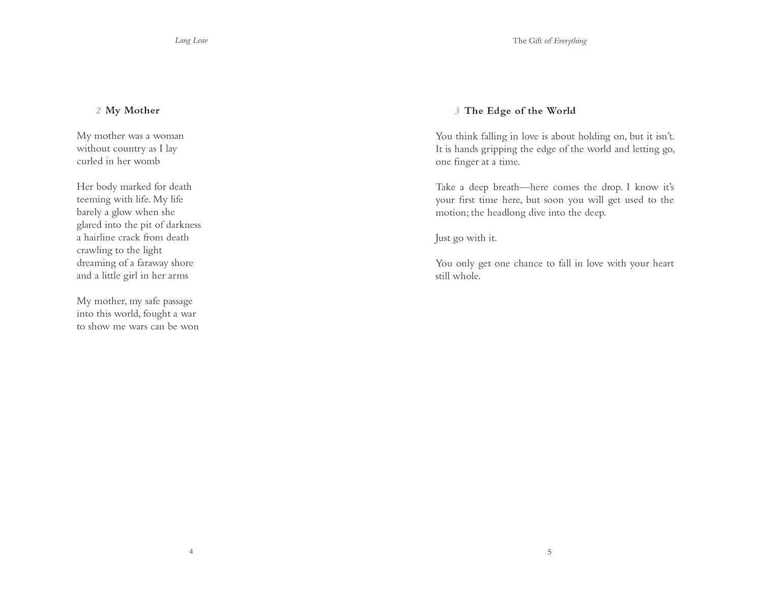 The Gift of Everything will thrill and delight fans of Lang Leav as well as those yet to discover the enchanting world of one the most celebrated poets in modern history.