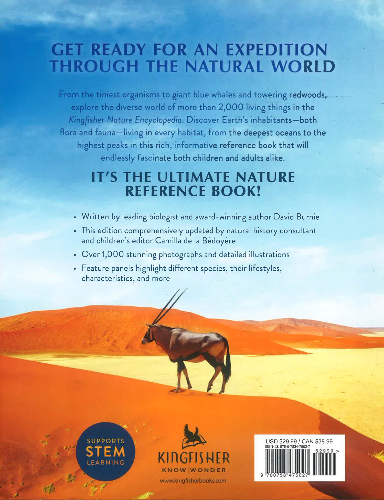 There is an amazing diversity of life on Earth, from microscopic organisms to giant redwoods and blue whales, and on every part of Earth's surface from tropical rain forests to dark ocean depths. The Kingfisher Nature Encyclopedia is an authoritative, beautifully-illustrated guide to the living world and all its flora and fauna. Features brand new photography and comprehensive text updates by expert Camilla de la Bedoyere.