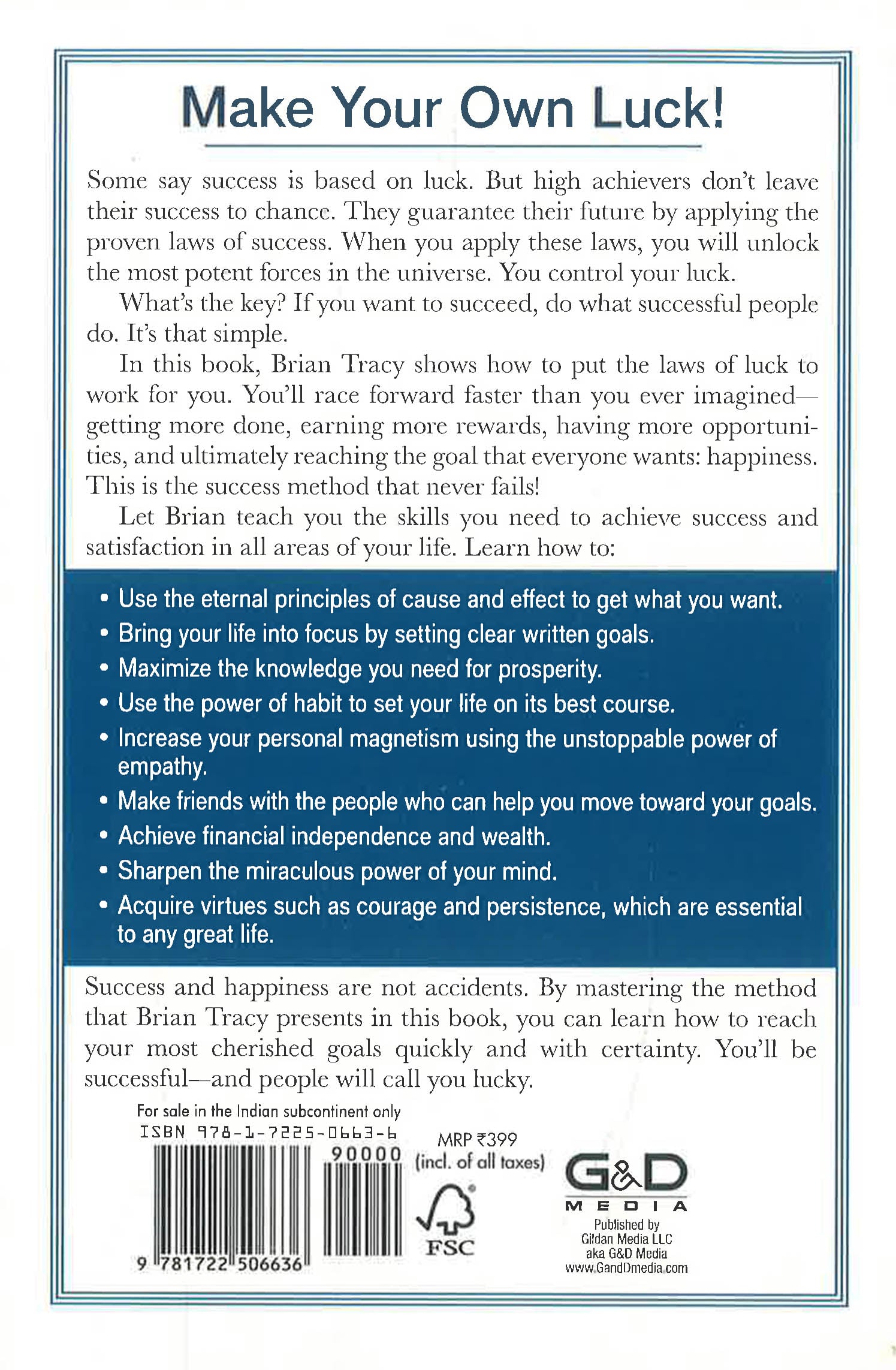 In this book, Brian Tracy shows how to put the laws of luck to work for you. You’ll race forward faster than you ever imagined getting more done, earning more rewards, having more opportuni-ties, and ultimately reaching the goal that everyone wants: happiness.