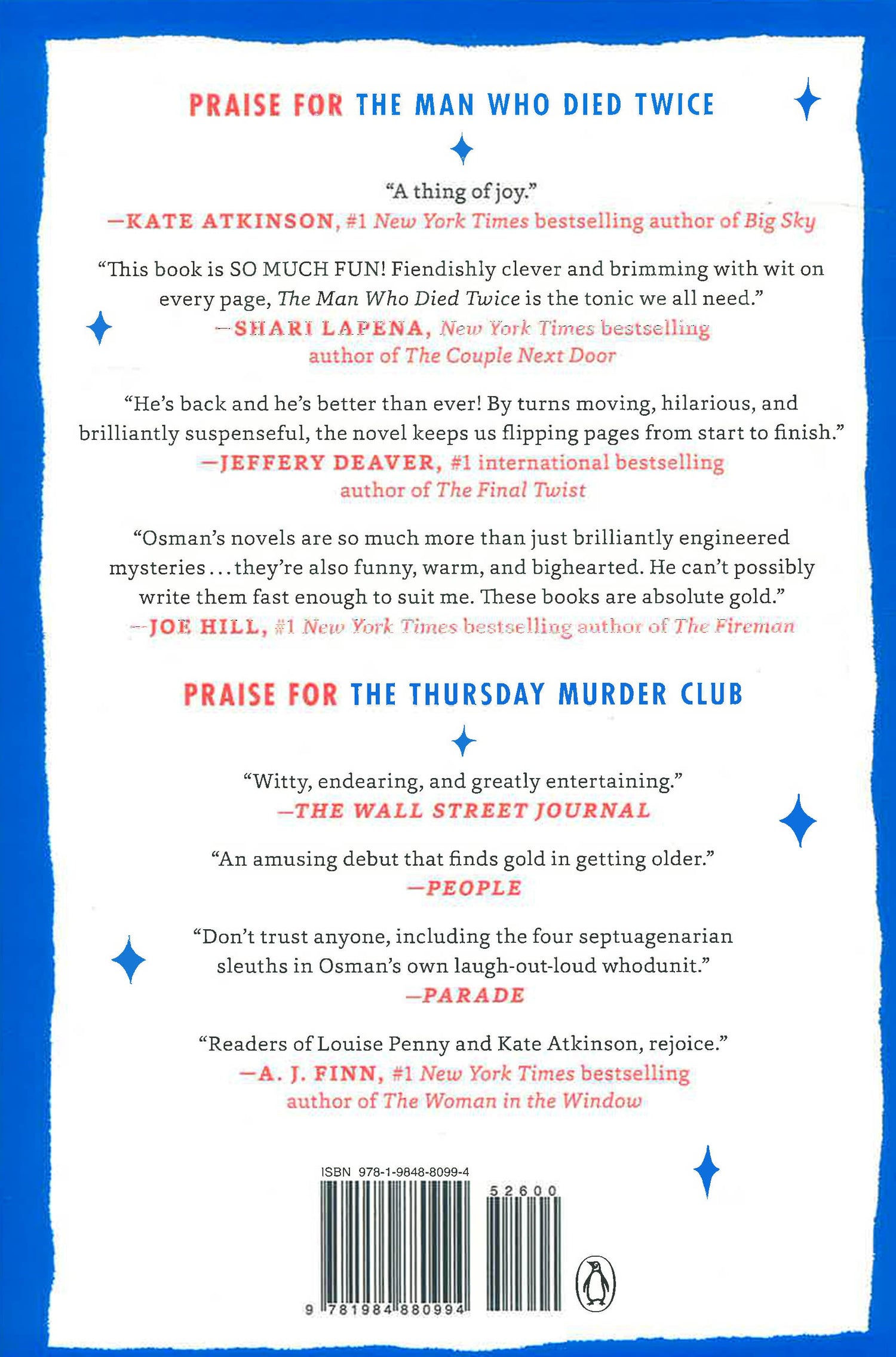 “It’s taken a mere two books for Richard Osman to vault into the upper leagues of crime writers. . . The Man Who Died Twice. . . dives right into joyous fun."