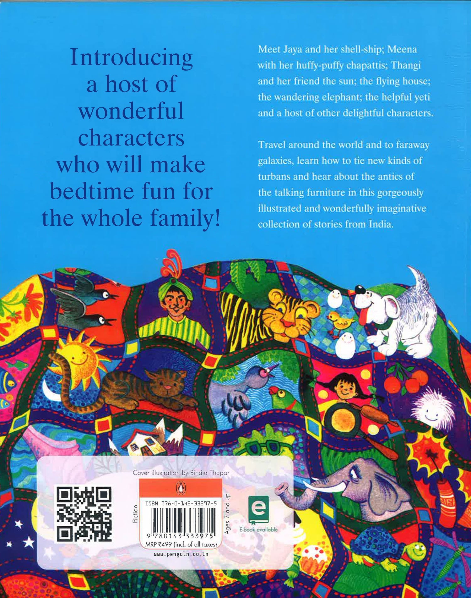 Meet Jaya and her shell-ship; Meena with her huffy-puffy chapattis; Thangi and her friend the sun; the flying house; the wandering elephant; the helpful yeti and a host of other delightful characters. Travel around the world and to faraway galaxies, learn how to tie new kinds of turbans and hear about the antics of the talking furniture in this gorgeously illustrated and wonderfully imaginative collection of stories from India.