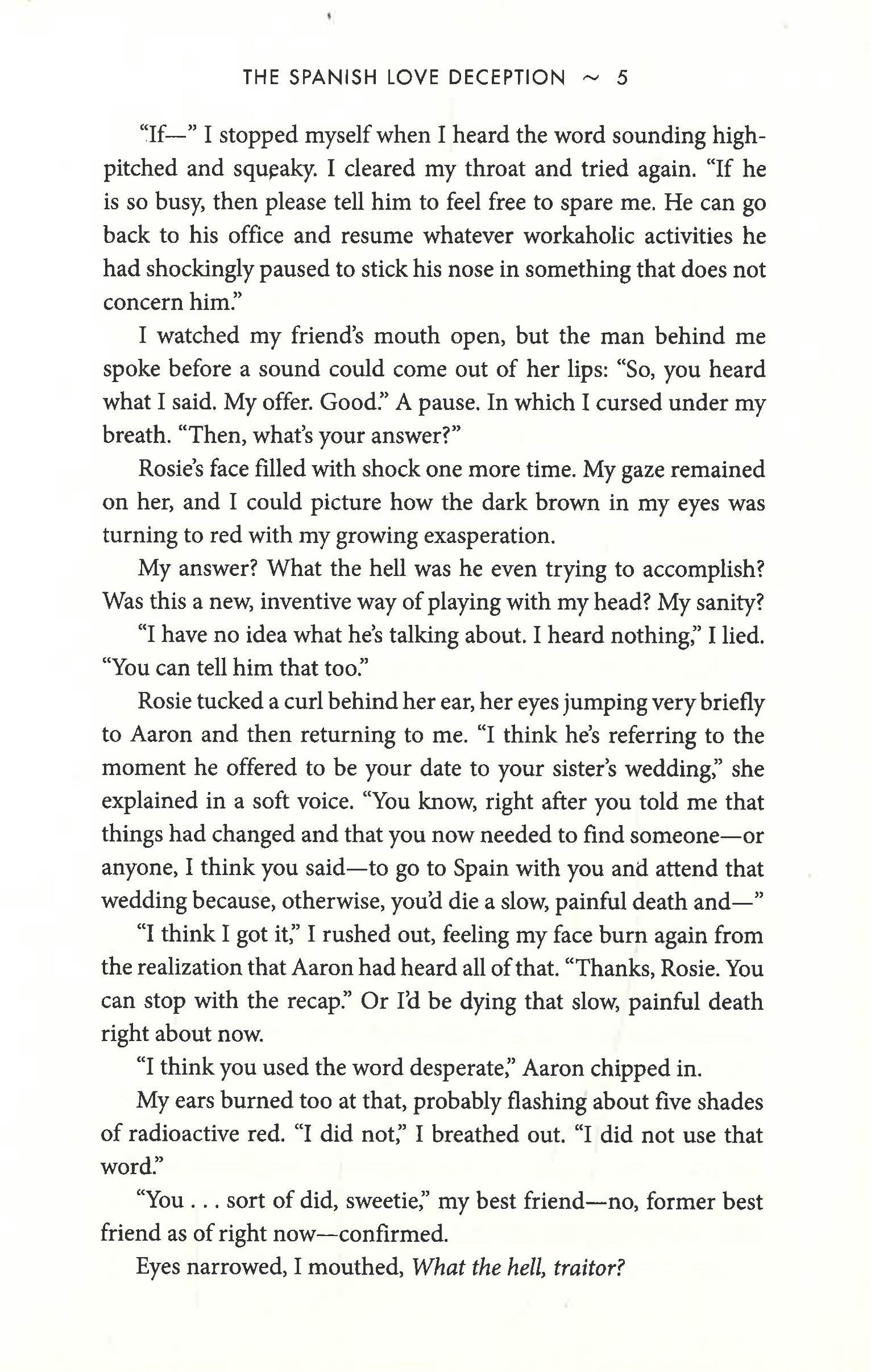 She only has four weeks to find someone willing to cross the Atlantic and aid in her deception. New York to Spain is no short flight and her raucous family won’t be easy to fool.