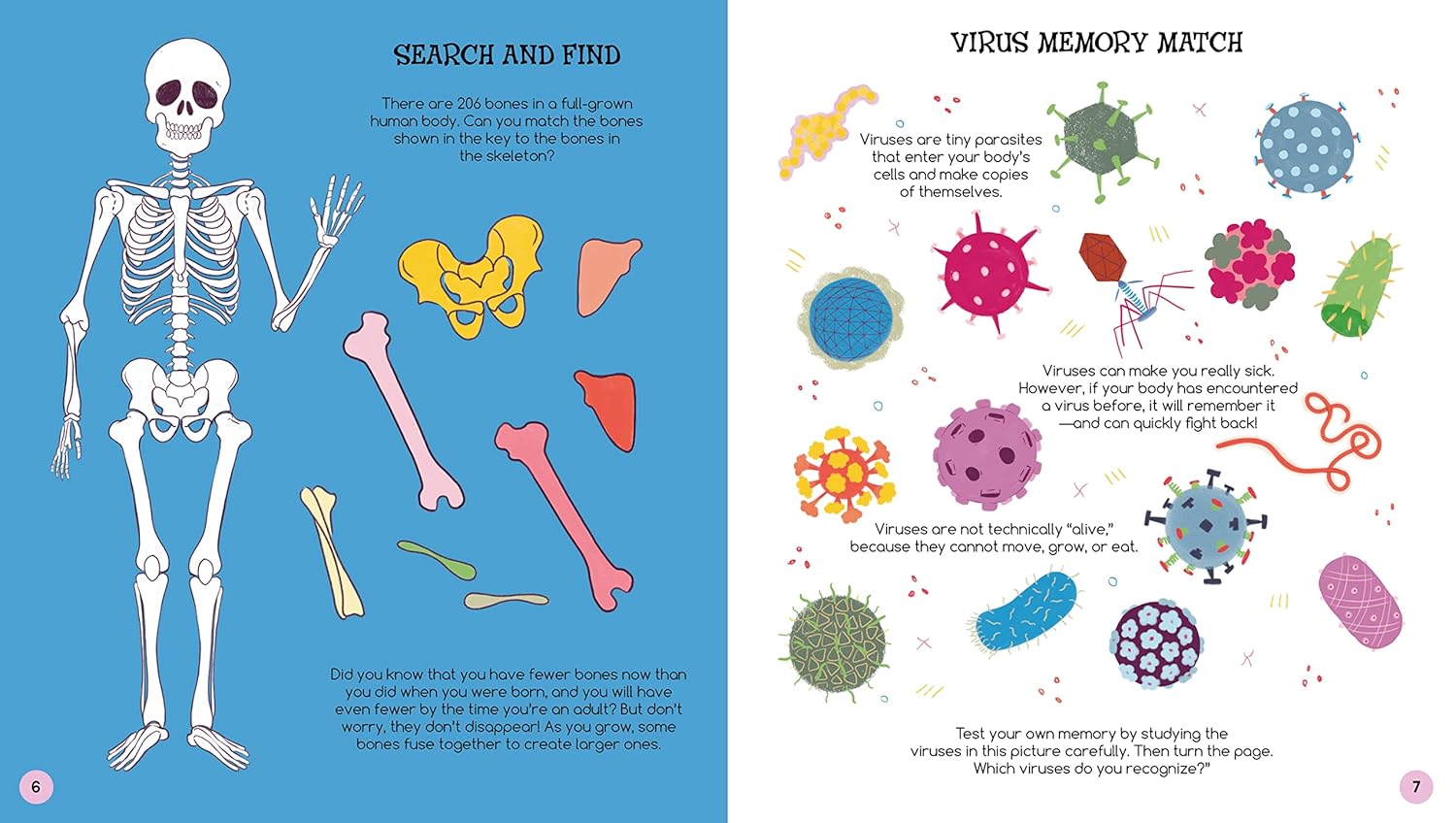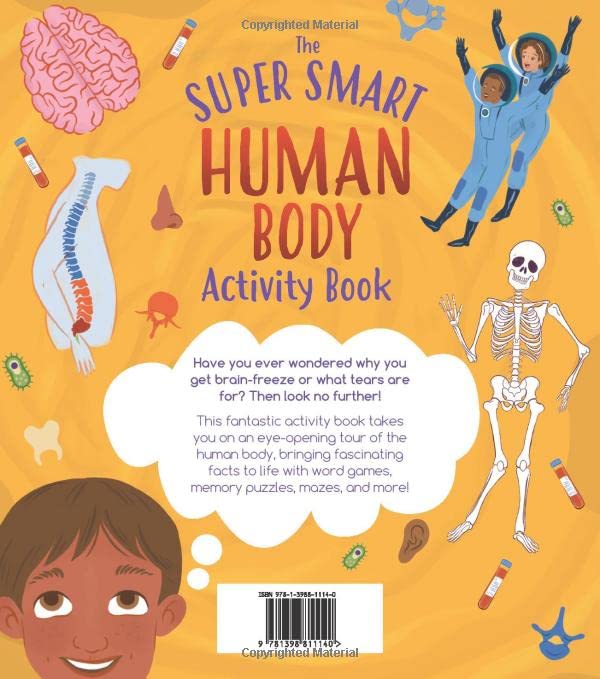 This fantastic, full-color activity book simplifies the human anatomy for kids, packed with eye-opening, mind-expanding, and toe-curling facts about the human body.From brains and bones to senses and cells, this activity book takes young readers on a fact-packed tour of human body. They can discover what tears are for, why you get brain-freeze, and how far you can sneeze, in the fact boxes on each page. Along the way they can solve of 50 mind-boggling puzzles, including mazes, odd-one-out and spot-the-difference, all themed around the human body.TopicsBacteria and virusesThe human skeletonOrgans and their functionsBrain science and memoryDiet and nutritionAny many more!Vibrantly illustrated in full-color, this book supports STEM learning in an innovative and entertaining way. If only learning were always this much fun! Ideally suited to kids aged 8+.ABOUT THE Young readers can puzzle it out in the depths of the oceans, the far reaches of space, the systems of the human body and more with the Super Smart Activity Books . These vibrantly illustrated books are filled with brain-teasing activities to reinforce school learning on a range of topics, including science, biology and geography.