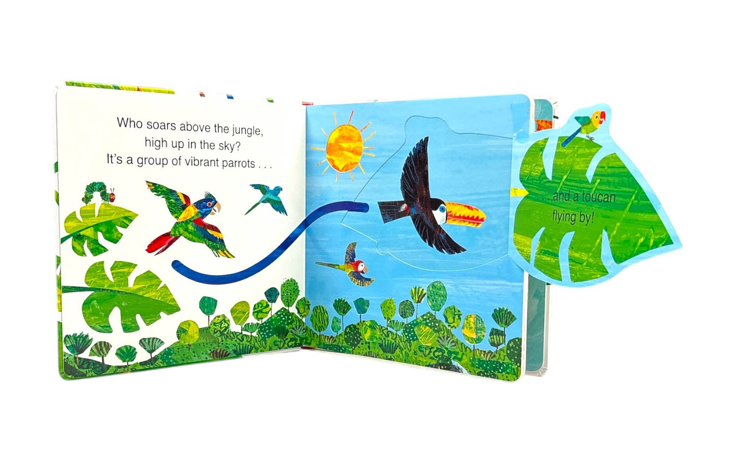 Follow the finger trails and lift the flaps to discover sleeping sloths, swooping parrots, crawling tigers and many more. A gentle rhyming narrative with a die-cut finger trail, die-cut details and a chunky flap on every page. There is so much for little hands to explore in this fun first introduction to jungle creatures and their habitat.