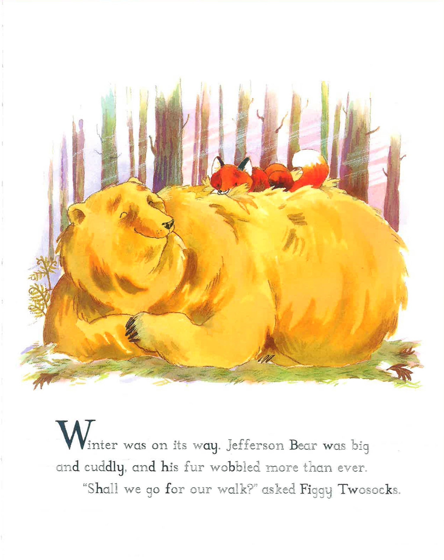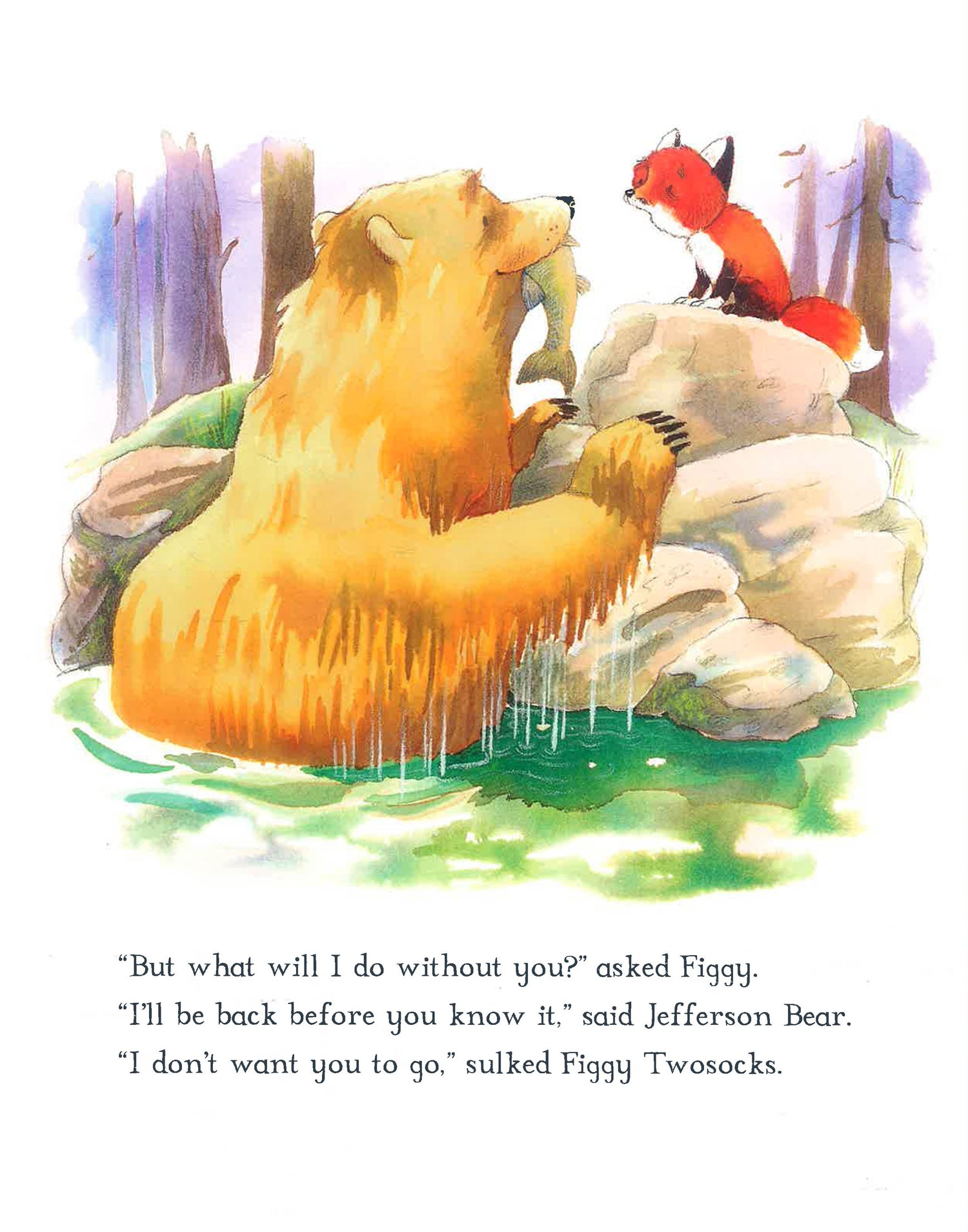 'What will I do without you?' asks Figgy Twosocks as her friend Jefferson Bear prepares to hibernate for winter. Alone in the wintry woods, with only her naughty brothers, Big Smudge and Floppylugs, to play with, Figgy Twosocks feels sad and sulky, until she finds a new playmate in Hoptail the squirrel. A poignant story with a reassuring message, this sequel to What Are Friends For? is perfect for all young children exploring the art of making new friends and learning how to deal with separation. The gentle text and irresistible artwork makes this a picture book ideal for sharing with even the smallest child.
