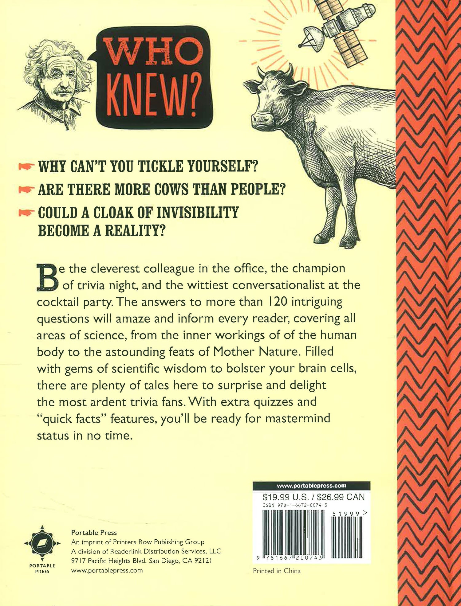 Who Knew? The Big Book of Science Questions That Will Make You Think Again includes more than 100 fascinating articles across twelve chapters that will answer questions such as “Why can’t we go faster than the speed of light?” and “How green are electric cars?” This compilation of scientific knowledge consists of entries from Who Knew? Physics and Who Knew? Human Anatomy, plus dozens of brand-new articles. Chapters cover subjects such as cosmology, astronomy, planet Earth, forces and materials, life on Earth, botany, zoology, the human body, the brain, medicine, computers and technology, and the future. A quiz at the end of each chapter will test your knowledge so that you’ll be ready for mastermind status in no time!