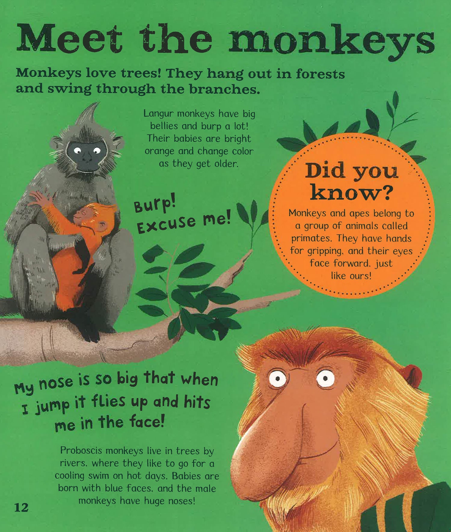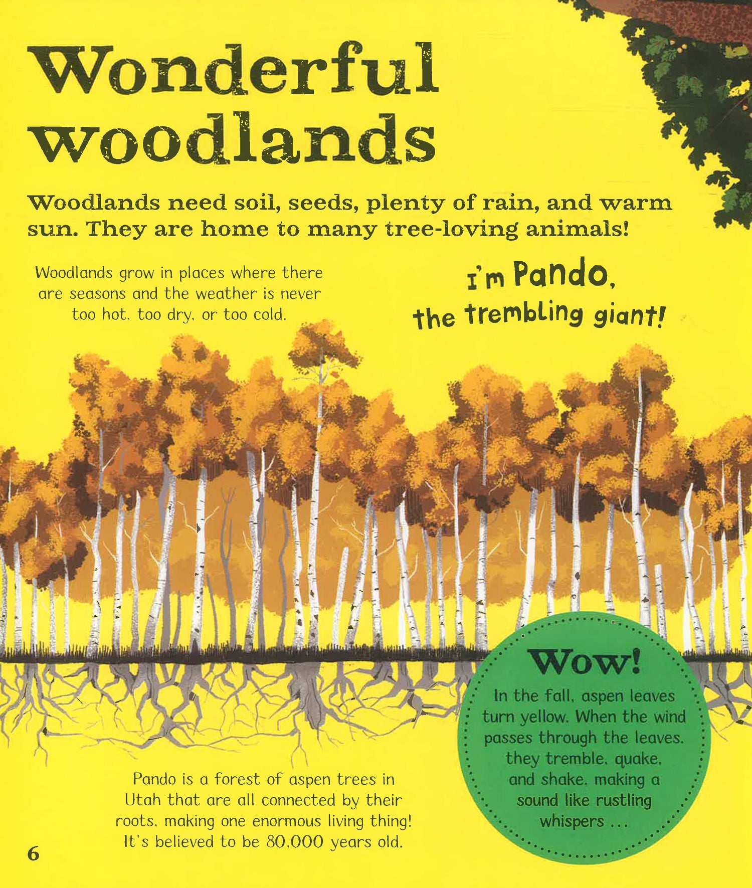 Which tree is as tall as a skyscraper ? Who lives high up in the trees? Is there really a ghost bear? Find out the answers to these questions, and lots more, in this book featuring trees, leaves, animals on the ground, at the top of a tree and everything in between.
