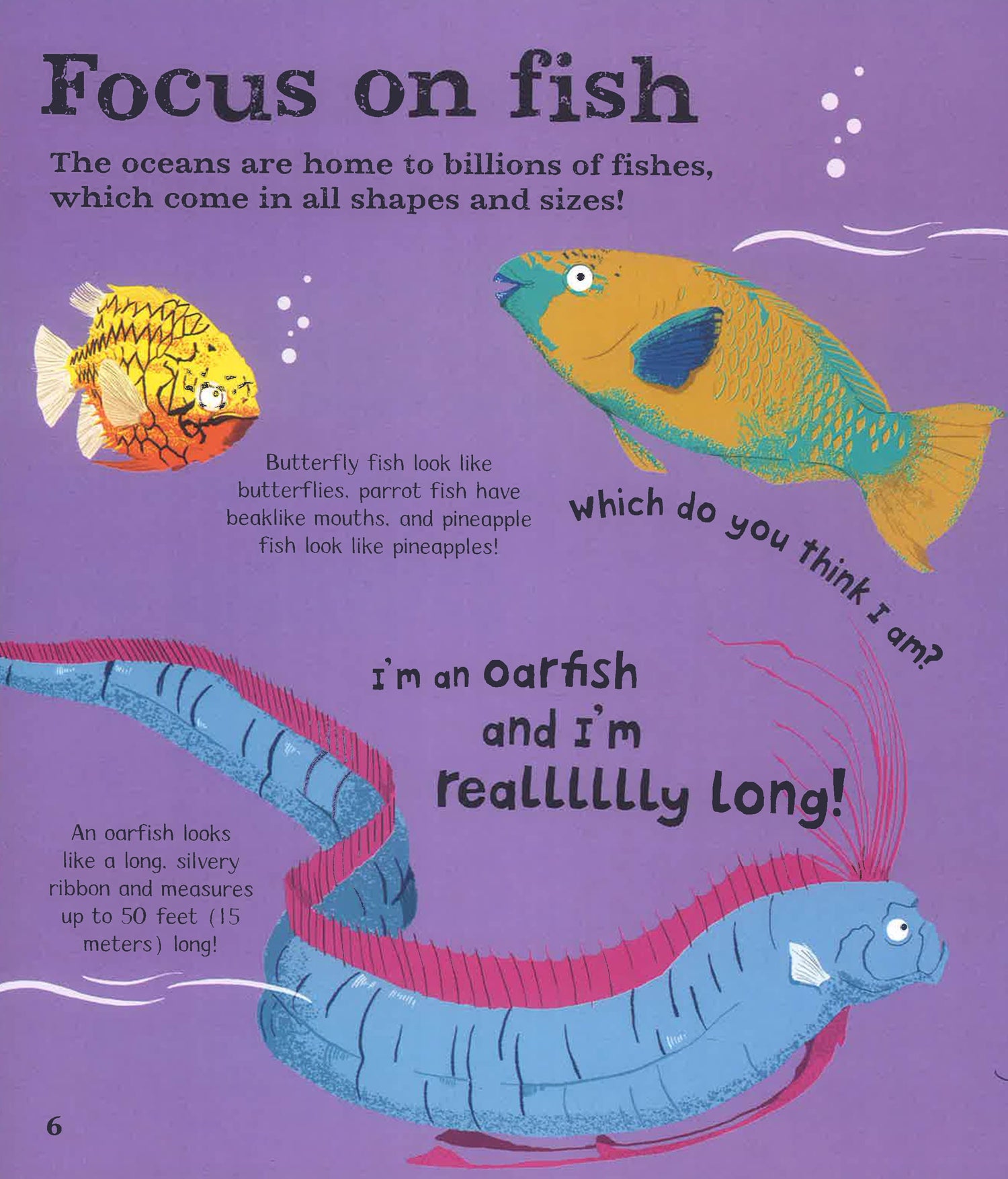 Where do loggerhead turtles lay their eggs? Which is the biggest ocean animal in the ocean? How many kinds of shark can you name? Learn more surprising facts about the world's oceans in this lively and fascinating book.