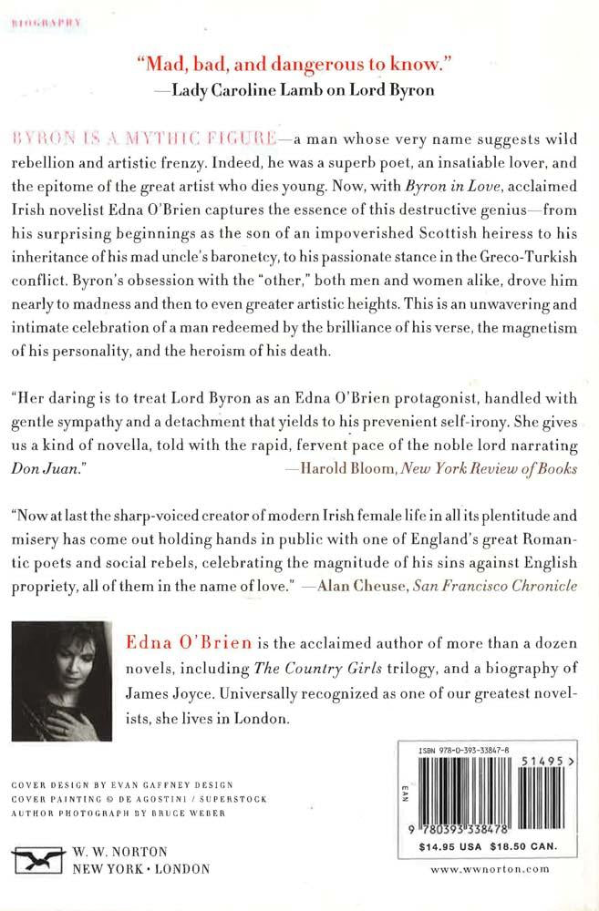Acclaimed biographer of James Joyce, Edna O'Brien has written a "jaunty" (The New Yorker) biography that suits her fiery and charismatic subject. She follows Byron from the dissipations of Regency London to the wilds of Albania and the Socratic pleasures of Greece and Turkey, culminating in his meteoric rise to fame at the age of twenty-four. With "a novelist's understanding of tempo and characterization" (Miami Herald), O'Brien captures the spirit of the man and creates an indelible portrait that explodes the Romantic myth. Byron, as brilliantly rendered by O'Brien, is the poet as rebel, imaginative and lawless, and defiantly immortal.