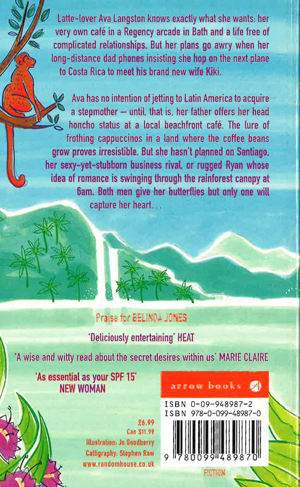 Latte-lover Ava Langston knows exactly what she wants: her very own cafe in a vintage arcade in Bath and a life free of complicated relationships. But her plans go awry when her long-distance dad phones insisting she hop on the next plane to Costa Rica to meet his brand new wife. Ava has no intention of jetting to Latin America to acquire a stepmother - until, that is, her father offers her head honcho status at a beachfront cafe. The lure of frothing cappuccinos in a land where the coffee beans grow proves irresistible. But she hasn't planned on Santiago, her sexy-yet-stubborn business rival, or rugged Ryan whose idea of romance is swinging through the rainforest canopy at 6am. Both men give her butterfliess but only one will capture her heart...