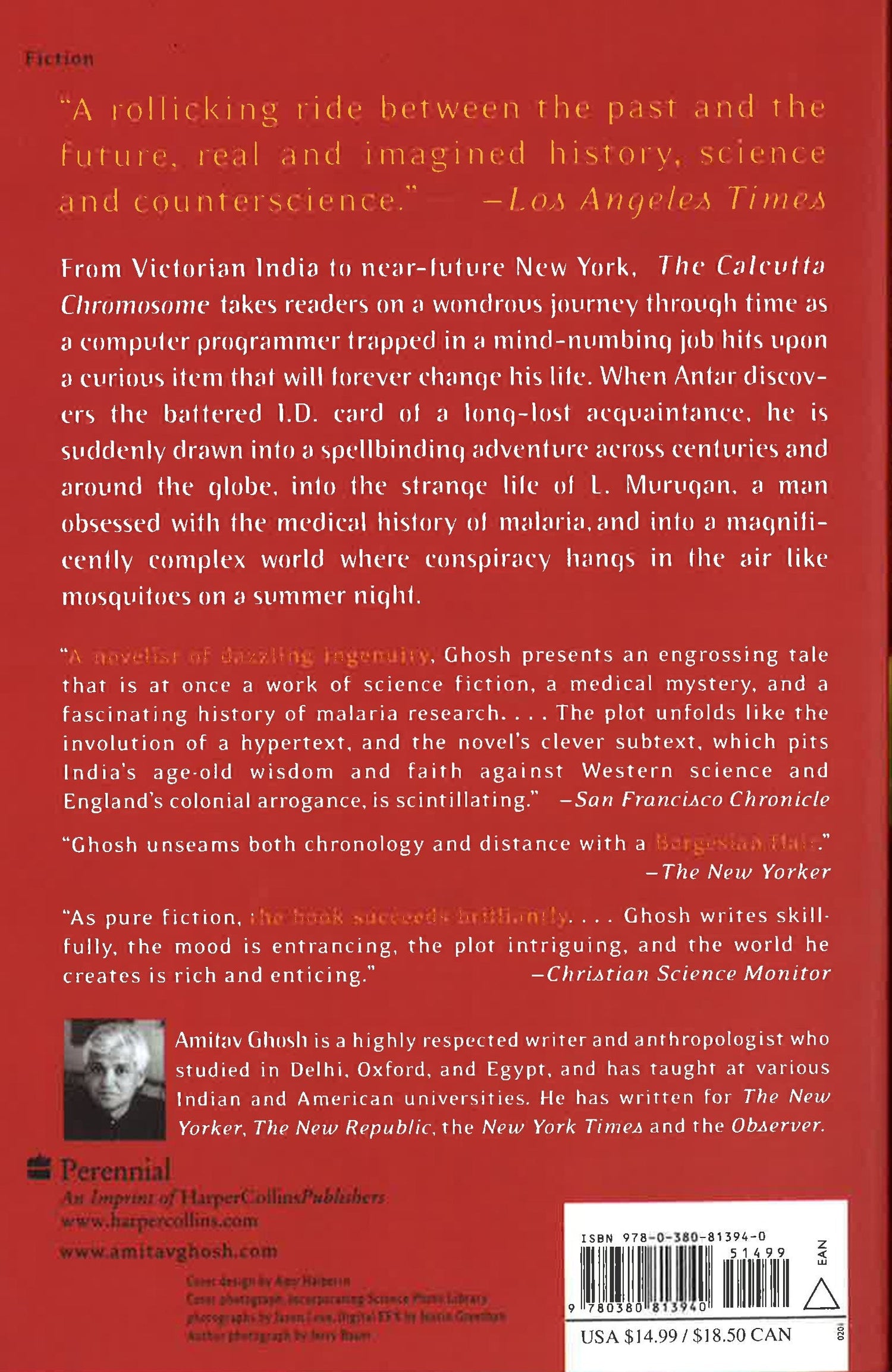 From Victorian India to near-future New York, The Calcutta Chromosome takes readers on a wondrous journey through time as a computer programmer trapped in a mind-numbing job hits upon a curious item that will forever change his life. When Antar discovers the battered I.D. card of a long-lost acquaintance, he is suddenly drawn into a spellbinding adventure across centuries and around the globe, into the strange life of L. Murugan, a man obsessed with the medical history of malaria, and into a magnificently complex world where conspiracy hangs in the air like mosquitoes on a summer night.