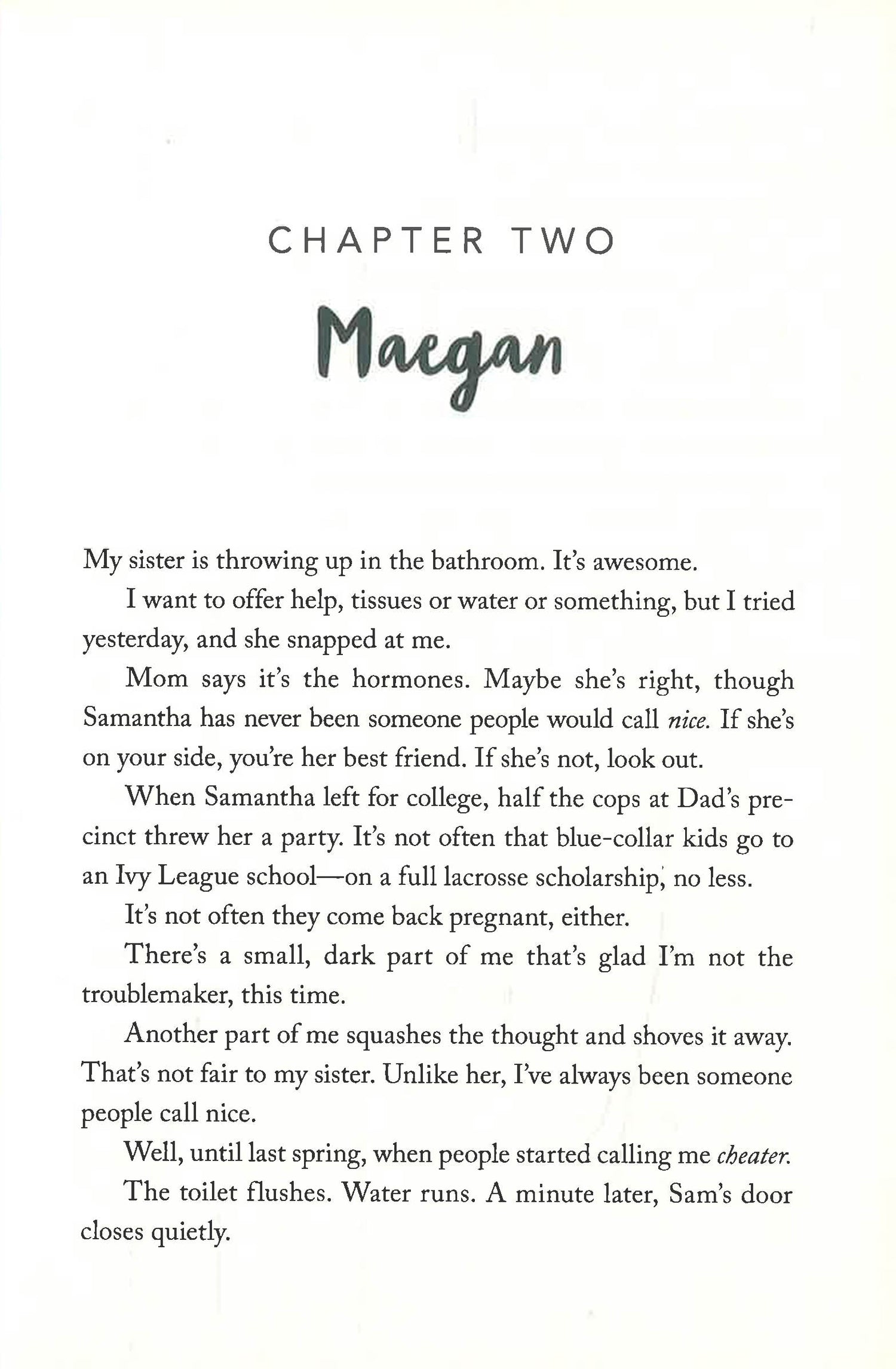 Everyone thinks of Maegan as a typical overachiever, but she has a secret of her own after the pressure got to her last year. And when her sister comes home from college pregnant, keeping it from her parents might be more than she can handle.