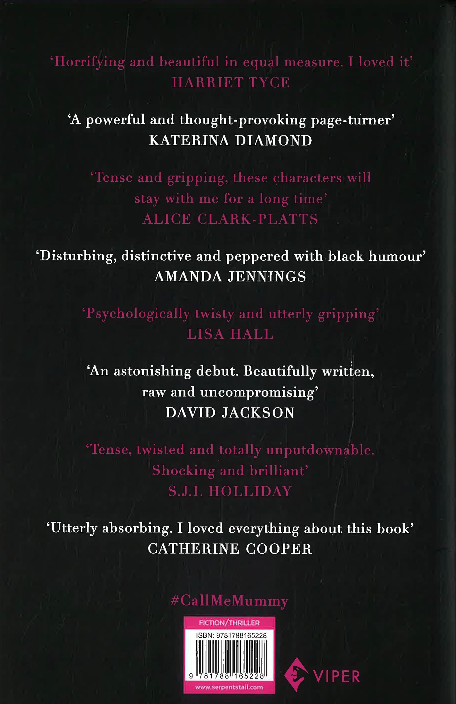 *** THE #1 KINDLE BESTSELLER *** *** A NETGALLEY BOOK OF THE MONTH *** 'Dark, heartbreaking and totally absorbing' - LORRAINE KELLY 'Brilliantly written and emotionally compulsive' - HARRIET TYCE 'A powerful and thought-provoking page turner' - KATERINA DIAMOND ________________________________________ CALL ME MUMMY. IT'LL BE BETTER IF YOU DO. Glamorous, beautiful Mummy has everything a woman could want. Except for a daughter of her very own. So when she sees Kim - heavily pregnant, glued to her phone and ignoring her eldest child in a busy shop - she does what anyone would do. She takes her. But foul-mouthed little Tonya is not the daughter that Mummy was hoping for. As Tonya fiercely resists Mummy's attempts to make her into the perfect child, Kim is demonised by the media as a 'scummy mummy', who deserves to have her other children taken too. Haunted by memories of her own childhood and refusing to play by the media's rules, Kim begins to spiral, turning on those who love her. Though they are worlds apart, Mummy and Kim have more in common than they could possibly imagine. But it is five-year-old Tonya who is caught in the middle... ________________________________________ 'Disturbing and distinctive, this is a book I couldn't put down' - AMANDA JENNINGS 'Tense and gripping, these characters will stay with me' - ALICE CLARK-PLATTS 'Psychologically twisty and utterly gripping' - LISA HALL
