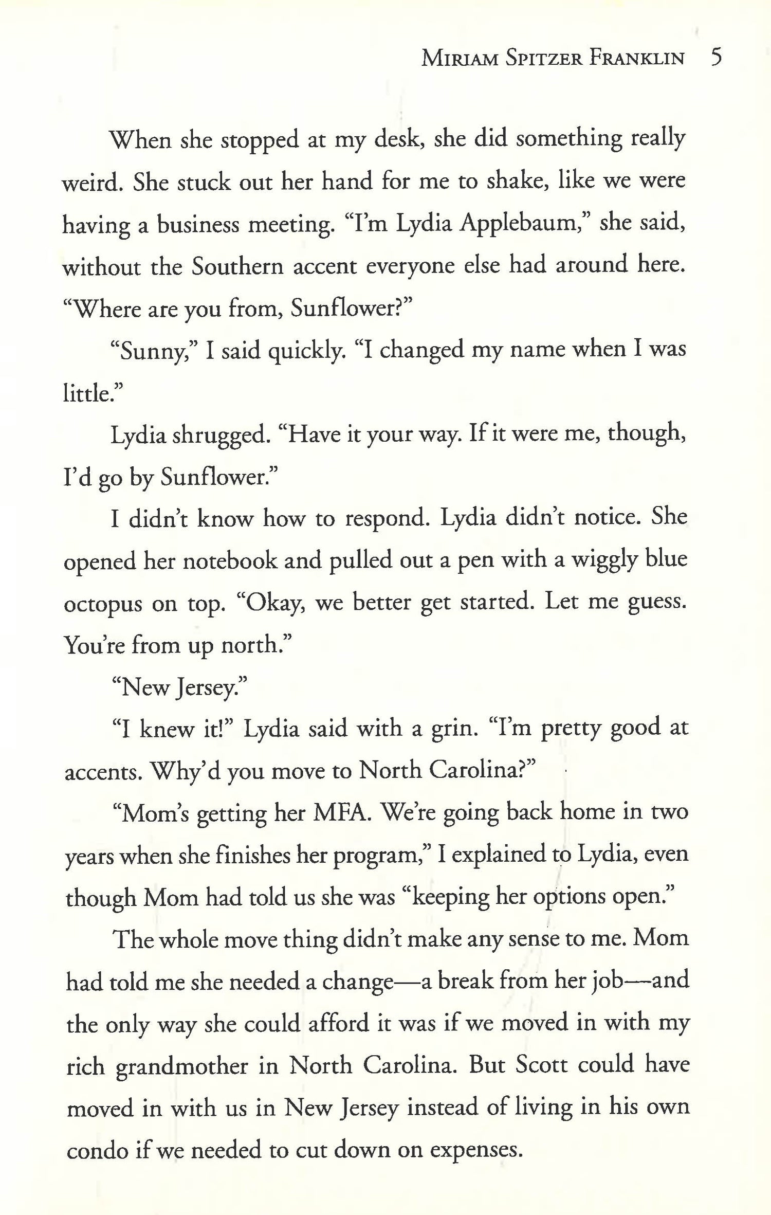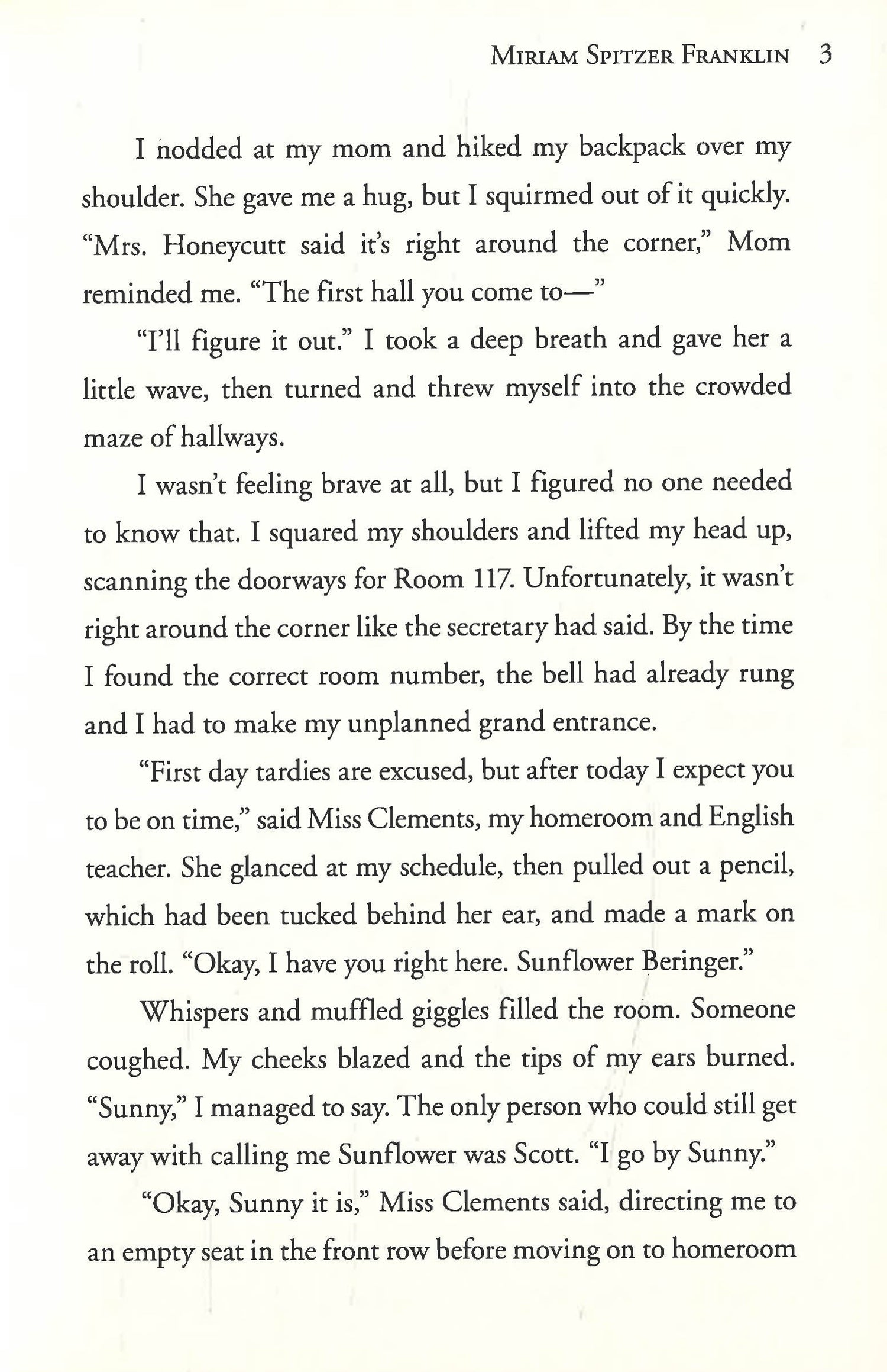 Sunny Beringer hates her first name her real first name Sunflower. And she hates that her mom has suddenly left behind her dad and uprooted their family miles away from New Jersey to North Carolina just so she can pursue some fancy degree. Sunny has to live with a grandmother she barely knows, and she's had to leave her beloved cat and all her friends behind. And no one else seems to think anything is wrong. So she creates "Sunny Beringer's Totally Awesome Plan for Romance" a list of sure-fire ways to make her parents fall madly in love again, including: Send Mom flowers from a "Secret Admirer" to make her dad jealous and make him regret letting them move so far away. Make a playlist of his favorite love songs the mushier the better and make sure it's always playing in the car. Ask them about the good old days when they first fell in love. But while working on a photo album guaranteed to make Mom change her mind and rush them right back home, Sunny discovers a photo-one that changes everything. Sunny's family, the people she thought she could trust most in the world, have been keeping an enormous secret from her. And she'll have to reconcile her family's past and present, or she'll lose everything about their future.