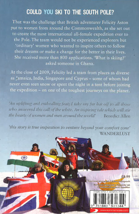 Could you ski to the South Pole? That was the challenge that British Adventurer, Felicity Aston put to women from around the Commonwealth as she set out to create the most international all-female expedition ever to the South Pole. The team would not be experienced explorers but 'ordinary' women who wanted inspire others to follow their dreams or make a change for the better in their lives. She received more than 800 applications and embarked on a three-month journey around the world to interview candidates. 'What is skiing?' was the question that greeted her in Ghana. At the close of 2009, Felicity led a team from places as diverse as Jamaica, India, Singapore and Cyprus - some of whom had never even seen snow or spent the night in a tent before joining the expedition - on a 900 km skiing trek across the Antarctic, one of the toughest and most notoriously hazardous journeys on the planet. Eighty-mile-an-hour winds ripped through base camp; frostbite and injuries were an everyday occurrence; deadly crevasses emerged from the cracking ice beneath their feet. But they also shared beliefs, ideas, philosophies and laughter, made lasting memories and broke no less than six World Records.