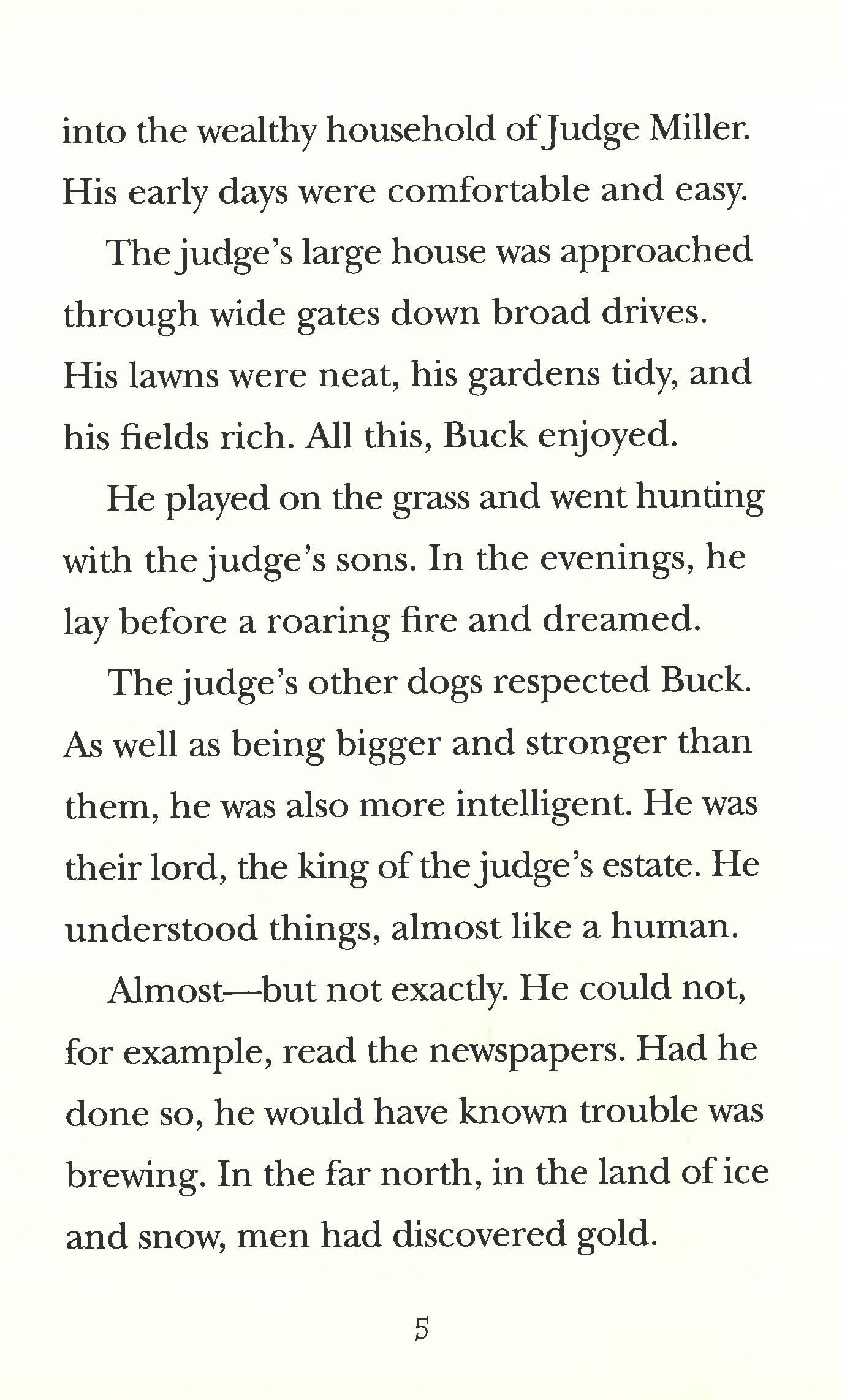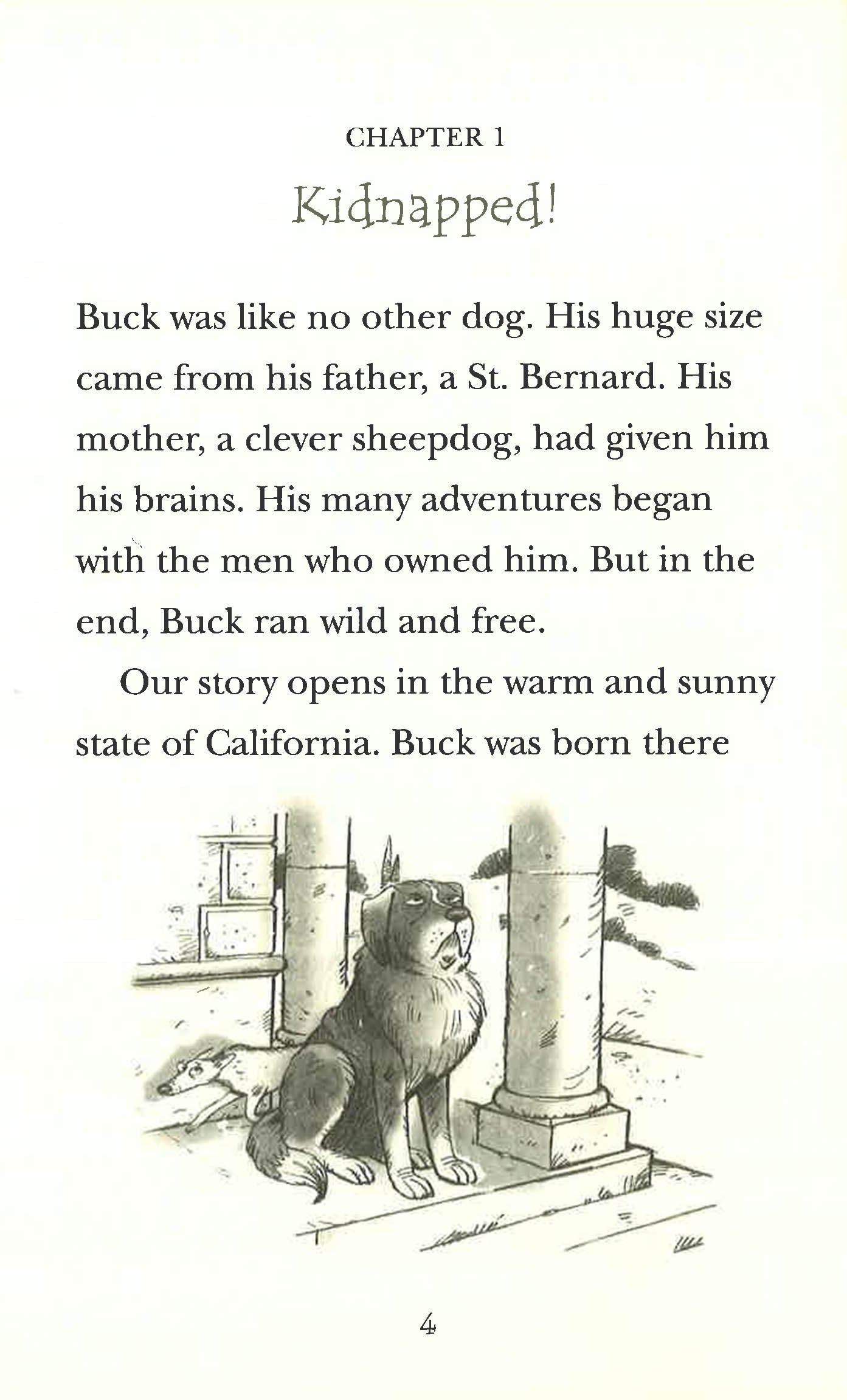 Domestic dog Buck is happy spending his days eating and sleeping in the Californian sunshine. That is until he is kidnapped, and is forced to work in the frozen north of Alaska as a sledge dog. Here he must resist returning to a wild state and fight for his life. An atmospheric story of adventure and survival, this adaptation, complete with new illustrations, is perfect for children aged 6 and up.