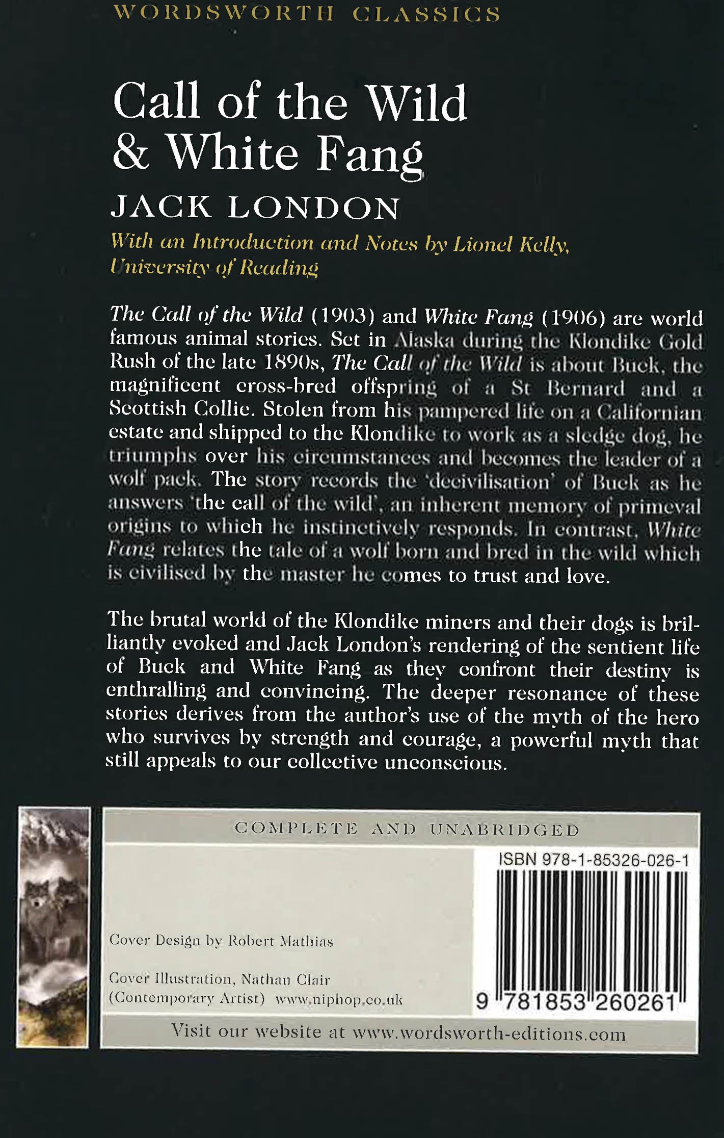 With an Introduction and Notes by Lionel Kelly, University of Reading. The Call of the Wild (1903) and White Fang (1906) are world famous animal stories. Set in Alaska during the Klondike Gold Rush of the late 1890s, The Call of the Wild is about Buck, the magnificent cross-bred offspring of a St Bernard and a Scottish Collie. Stolen from his pampered life on a Californian estate and shipped to the Klondike to work as a sledge dog, he triumphs over his circumstances and becomes the leader of a wolf pack. The story records the 'decivilisation' of Buck as he answers 'the call of the wild', an inherent memory of primeval origins to which he instinctively responds. In contrast, White Fang relates the tale of a wolf born and bred in the wild which is civilised by the master he comes to trust and love. The brutal world of the Klondike miners and their dogs is brilliantly evoked and Jack London's rendering of the sentient life of Buck and White Fang as they confront their destiny is enthralling and convincing. The deeper resonance of these stories derives from the author's use of the myth of the hero who survives by strength and courage, a powerful myth that still appeals to our collective unconscious.