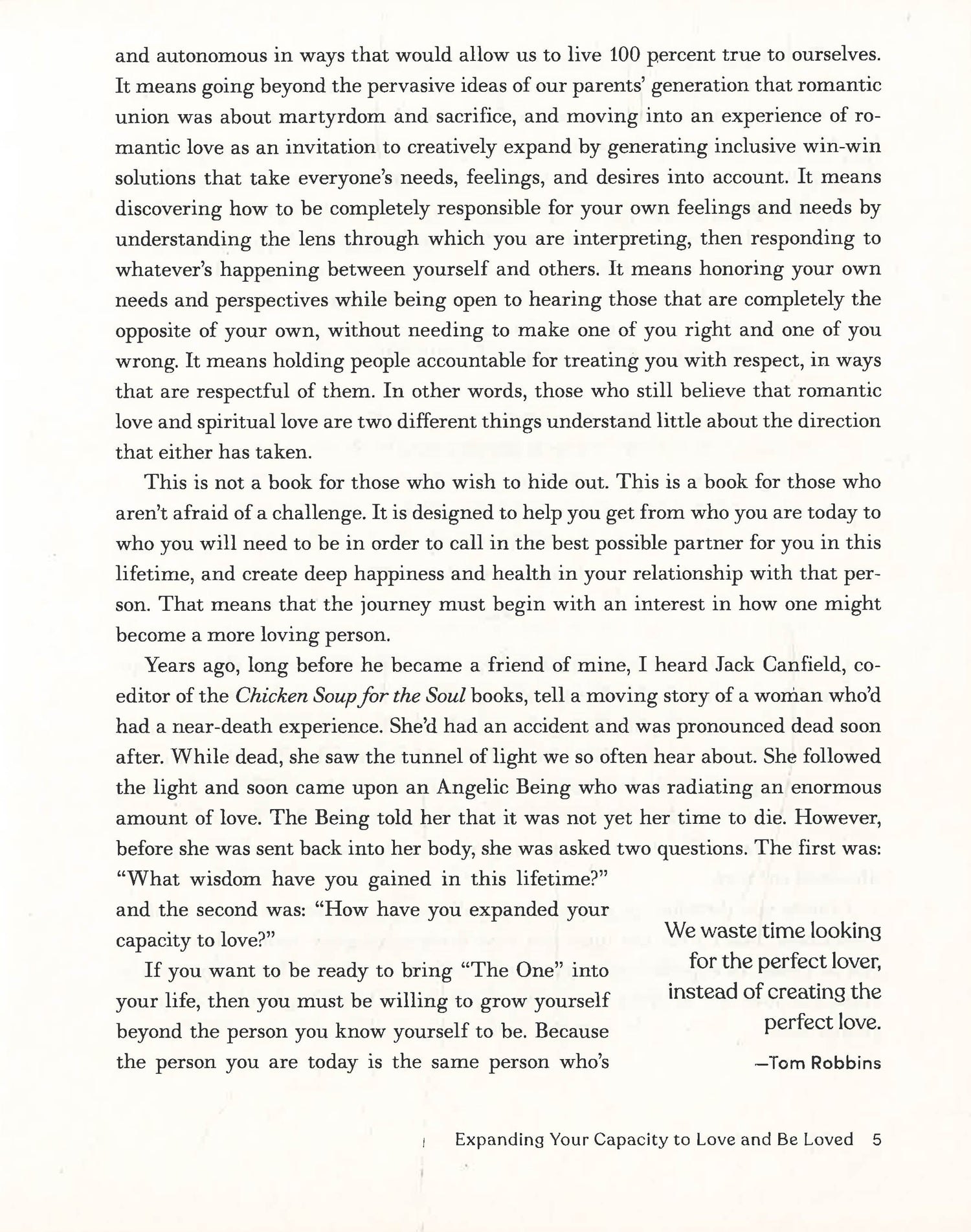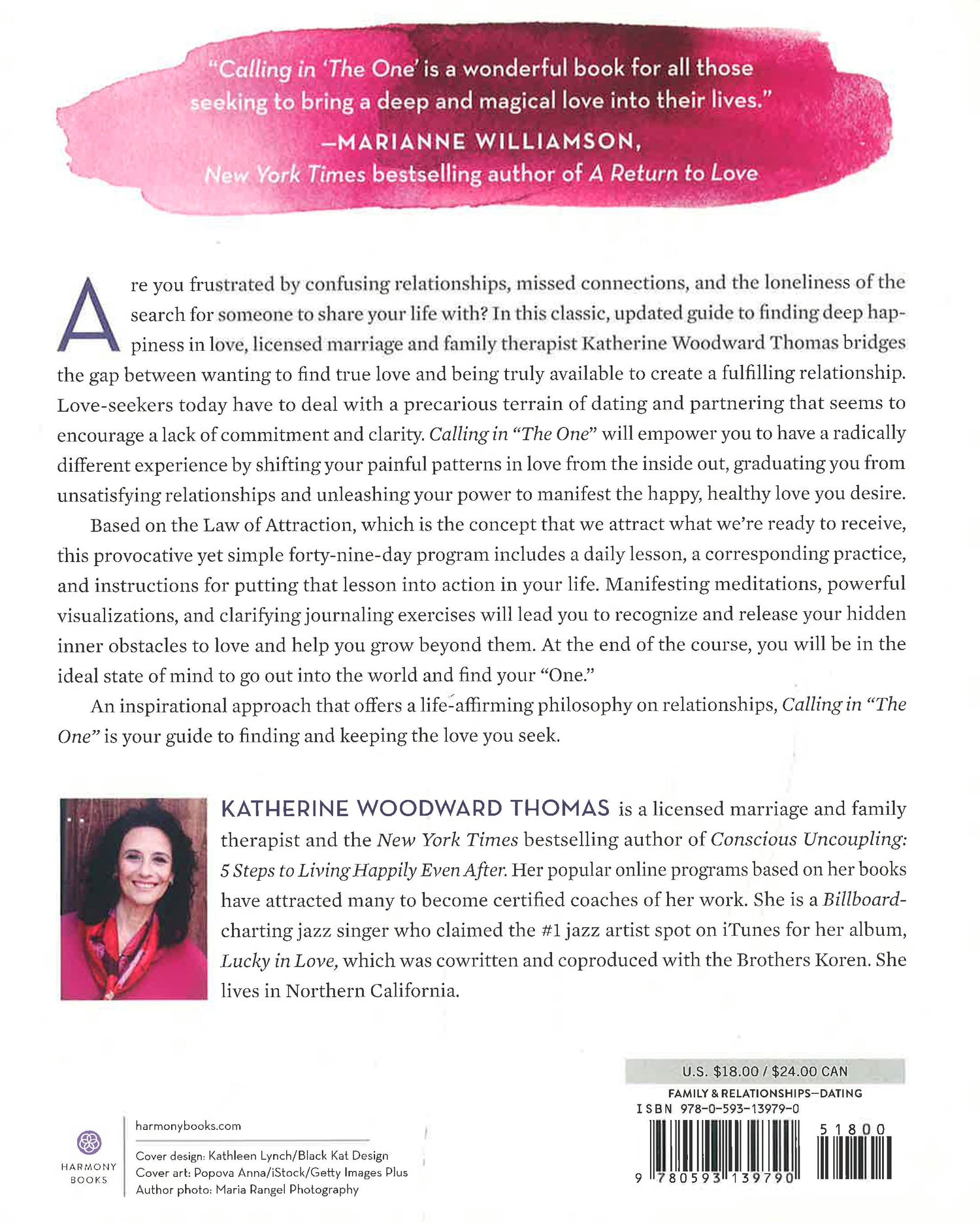 Are you frustrated by stymied relationships, missed connections, and the loneliness of the search for someone to spend the rest of your life with? In this classic, updated guide to finding deep happiness in love, licensed marriage and family therapist Katherine Woodward Thomas bridges the gap between wanting to find true love and being truly available to create a fulfilling relationship. Love-seekers today have to deal with a precarious terrain of dating and partnering that seems to encourage a lack of commitment and clarity. Calling in “The One” will empower you to have a radically different experience by shifting your painful patterns in love from the inside out, graduating you from unsatisfying relationships and unleashing your power to manifest the happy, healthy love you desire.