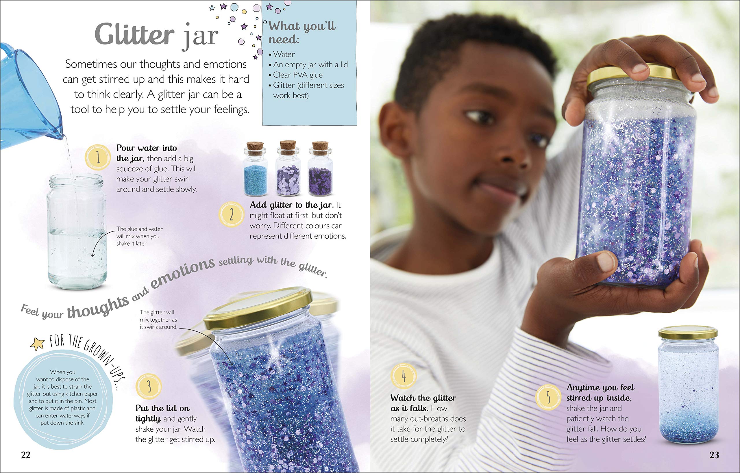 Help your children relax and focus with this supportive mindfulness guide. It contains activities that will help children understand their thoughts and feelings while having fun. The projects range from making a mindfulness jar to good living recipes and outdoor tasks that bring kids closer to nature and they're all designed to boost confidence and self-esteem. They're also fully flexible to match individual needs. With chapters dedicated to Focus, Calm, Move, Change and Reflect, this book shows how focused play can make a positive contribution to a child's positive mental health. Among the activities are creating a caring scrapbook and making energy slime. Simple breathing techniques and reflective exercises are also covered.