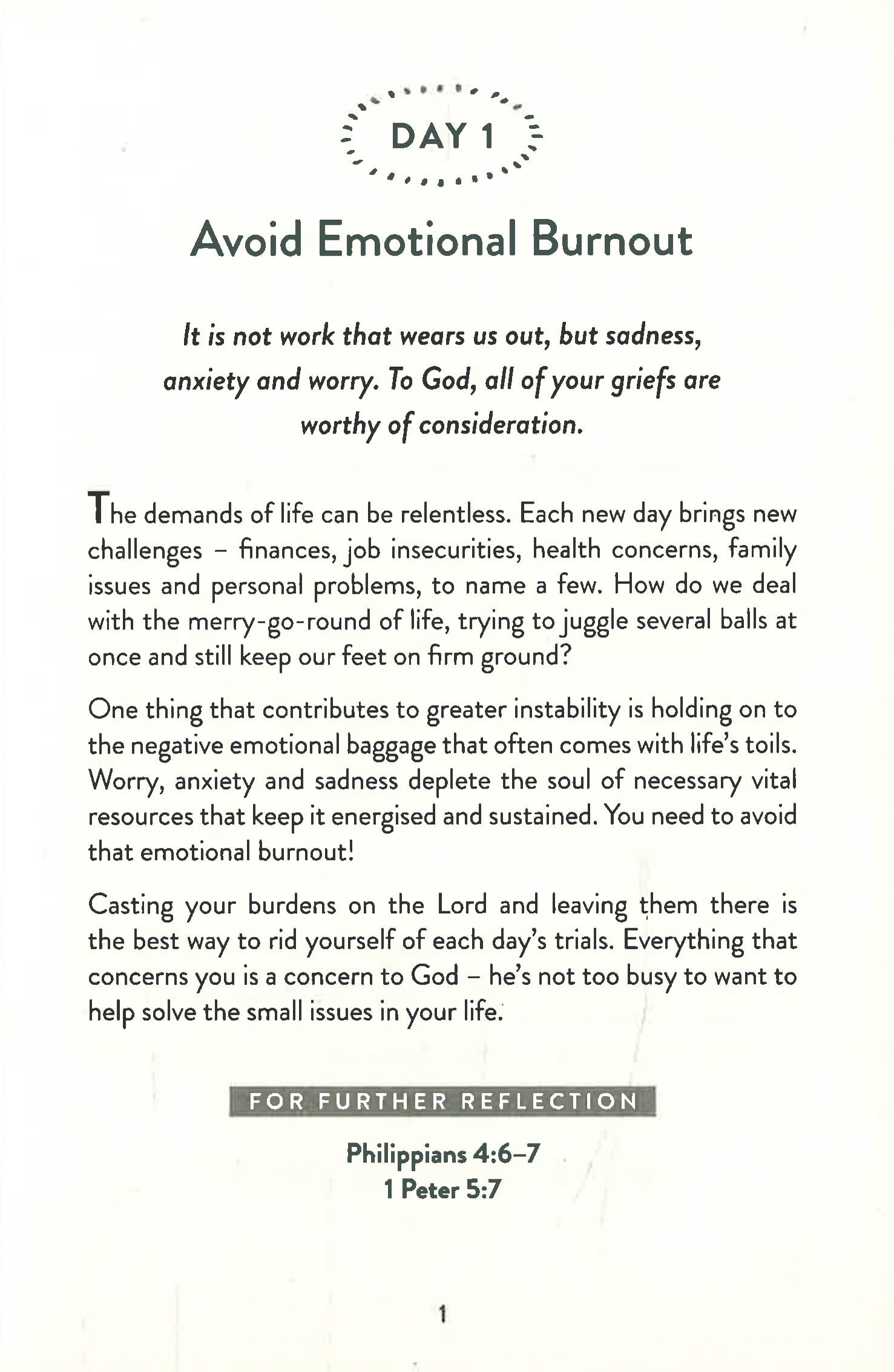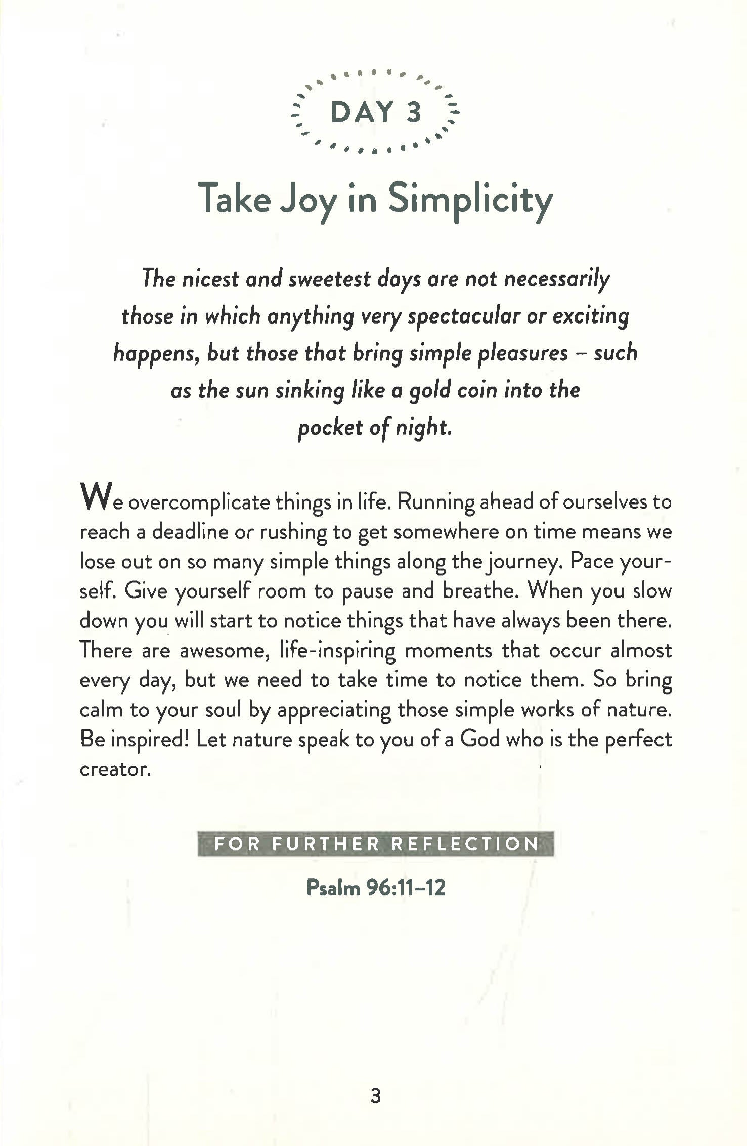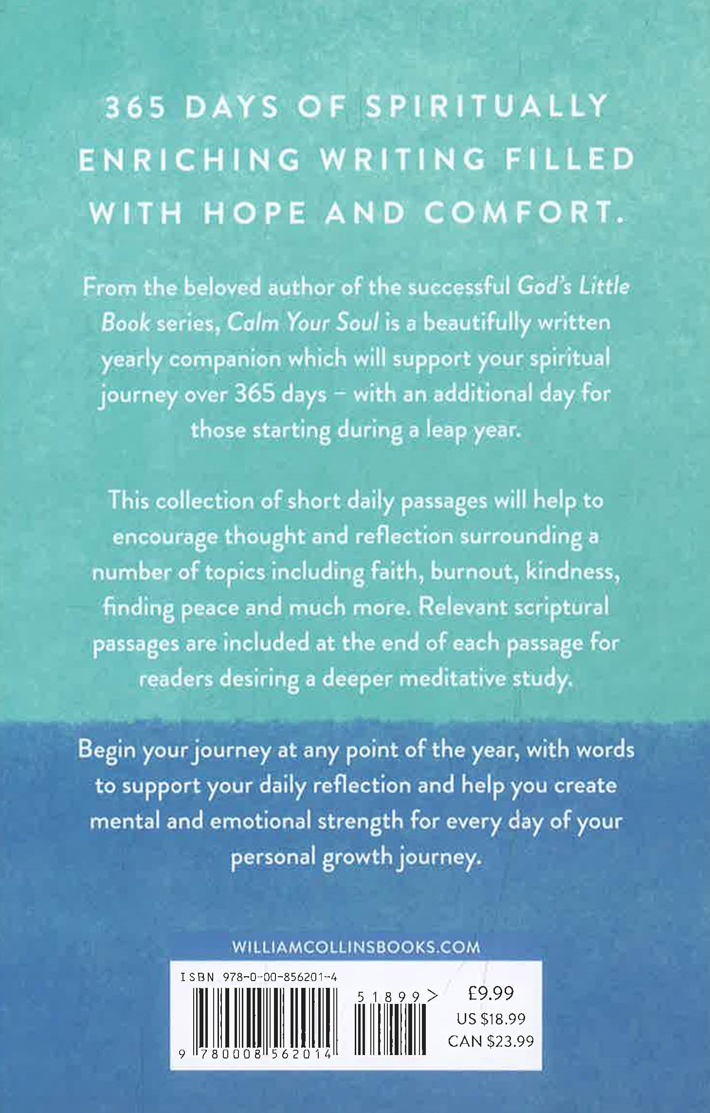 Calm for your Soul: 365 Days of Spiritual Tranquillity is a collection of spiritual and inspiring writing providing hope and comfort for every single day of the year. Each page begins with a statement followed by an encouraging thought. Relevant scriptural passages are included for readers who desire a deeper time of reflection. In this non-intrusive and thoughtful volume, Richard Daly, the successful author of the God’s Little Book series , creates a great resource for creating mental and emotional strength for each day. Begin your journey at any point of the year, with words that will support your meditation and resonate deeply as part of your personal growth journey.