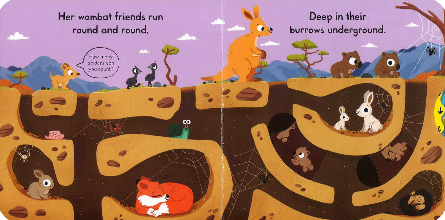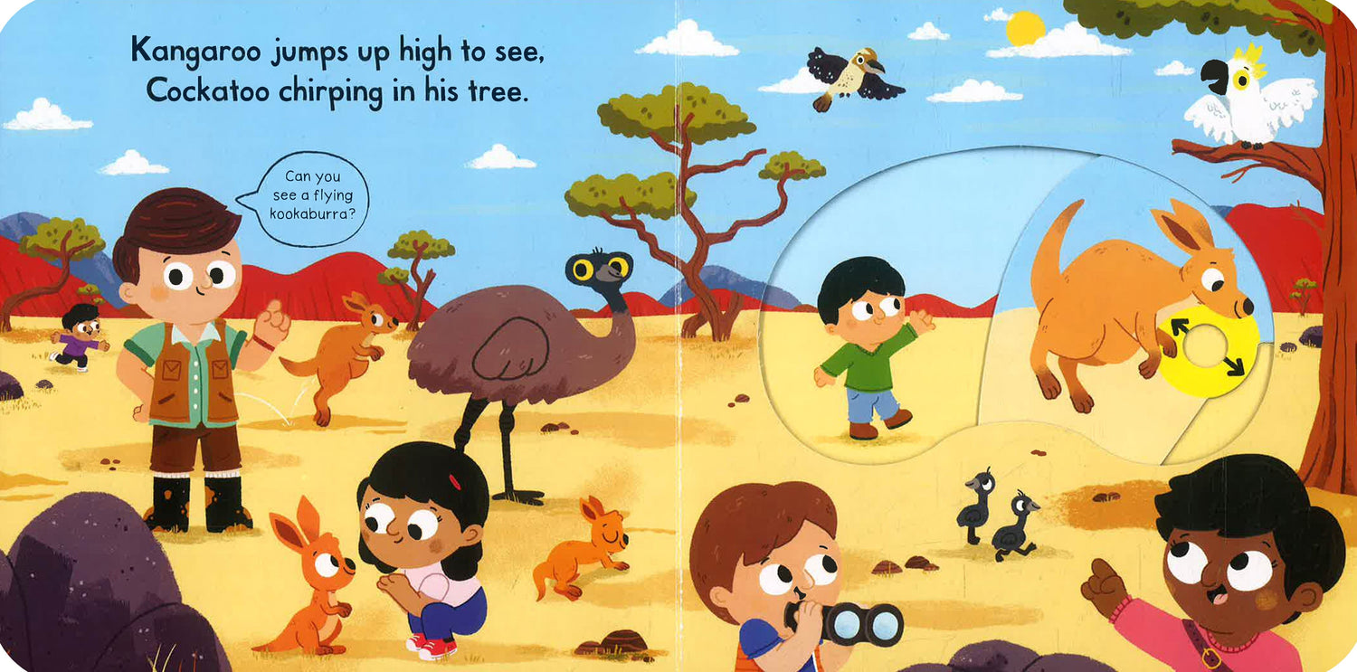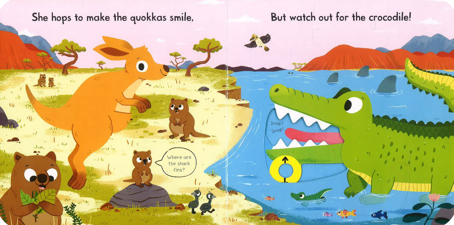 Have fun exploring Australia with Busy Kangaroo. Push, pull, and slide the tabs to bring Kangaroo's adventure to life. Say hello to a smiling quokka, discover the wombats' underground burrow . . . and watch out for the crocodile!