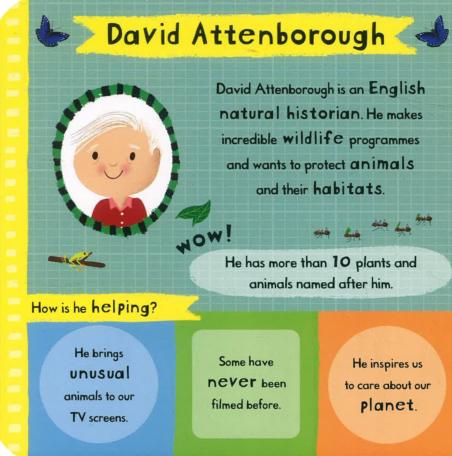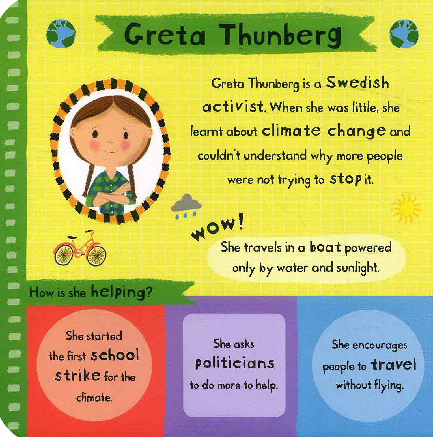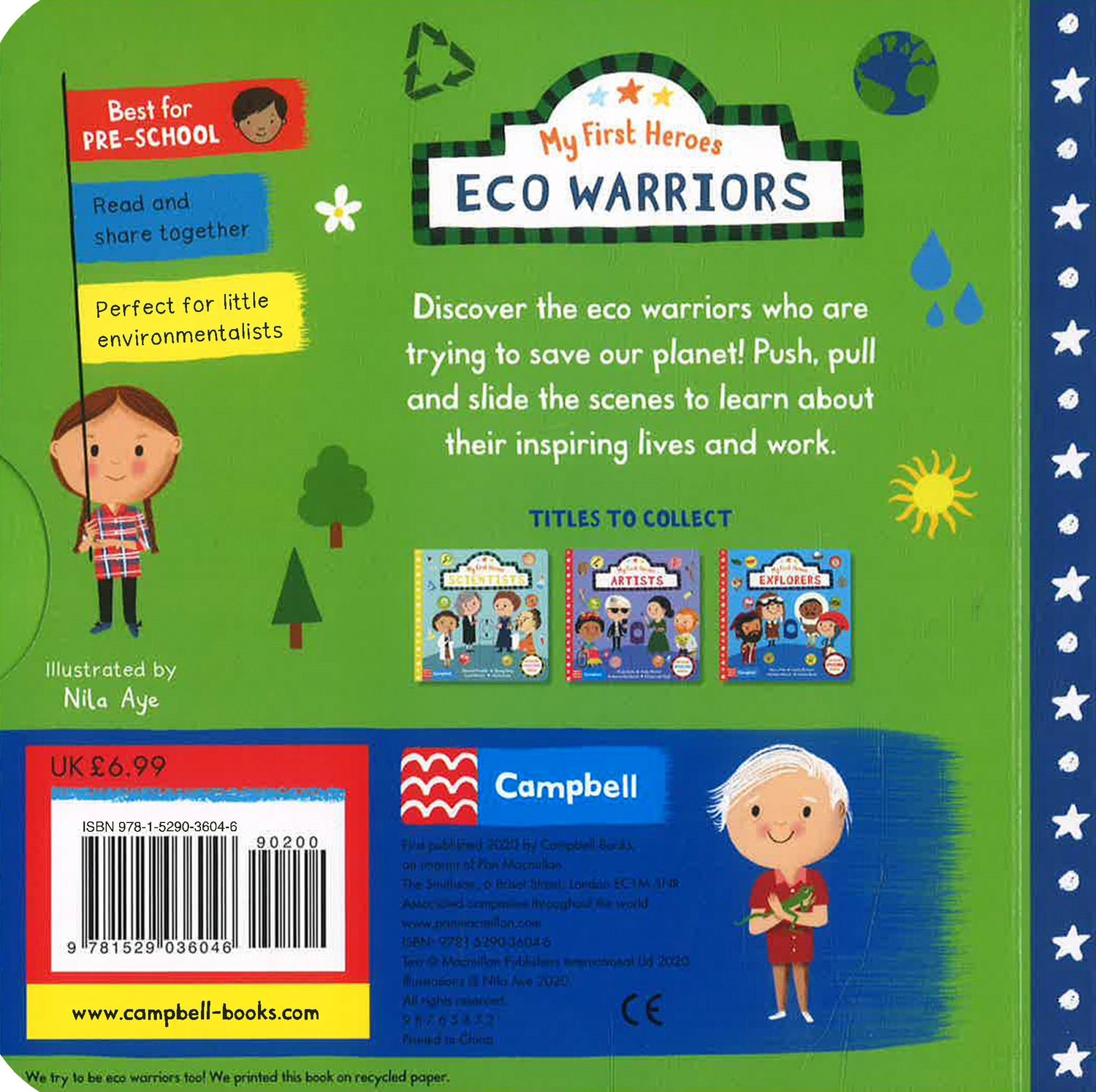 Discover the environmental heroes who are changing our world in My First Heroes: Eco Warriors! Push, pull and slide the scenes to find out about Greta Thunberg, David Attenborough, Isatou Ceesay and John Muir, and be inspired by their incredible work. With scenes to explore, fun facts to learn and bright, bold illustration by Nila Aye, this is the perfect introduction for inquisitive preschoolers to these amazing earth heroes.