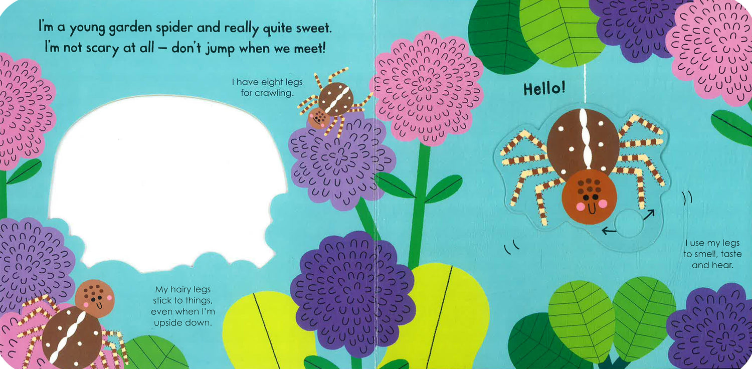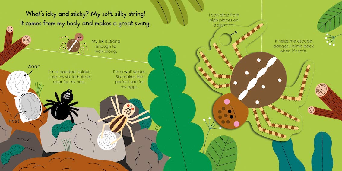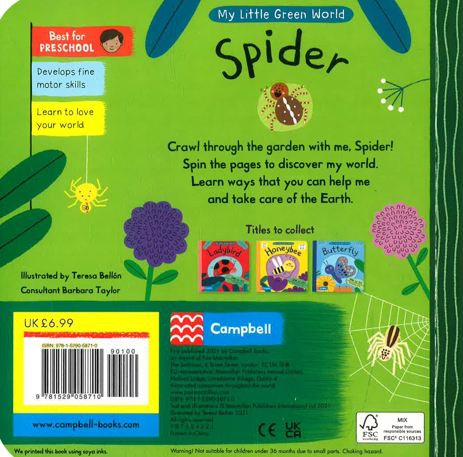 Meet Spider and explore his world in this eco-friendly board book with incredible spinning mechanisms.