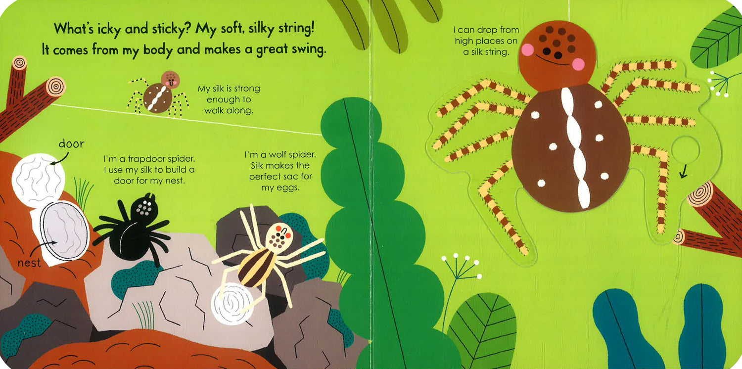 Move the pages to help Spider use his silk in wonderful ways, then discover how he helps farmers grow food for us to eat.