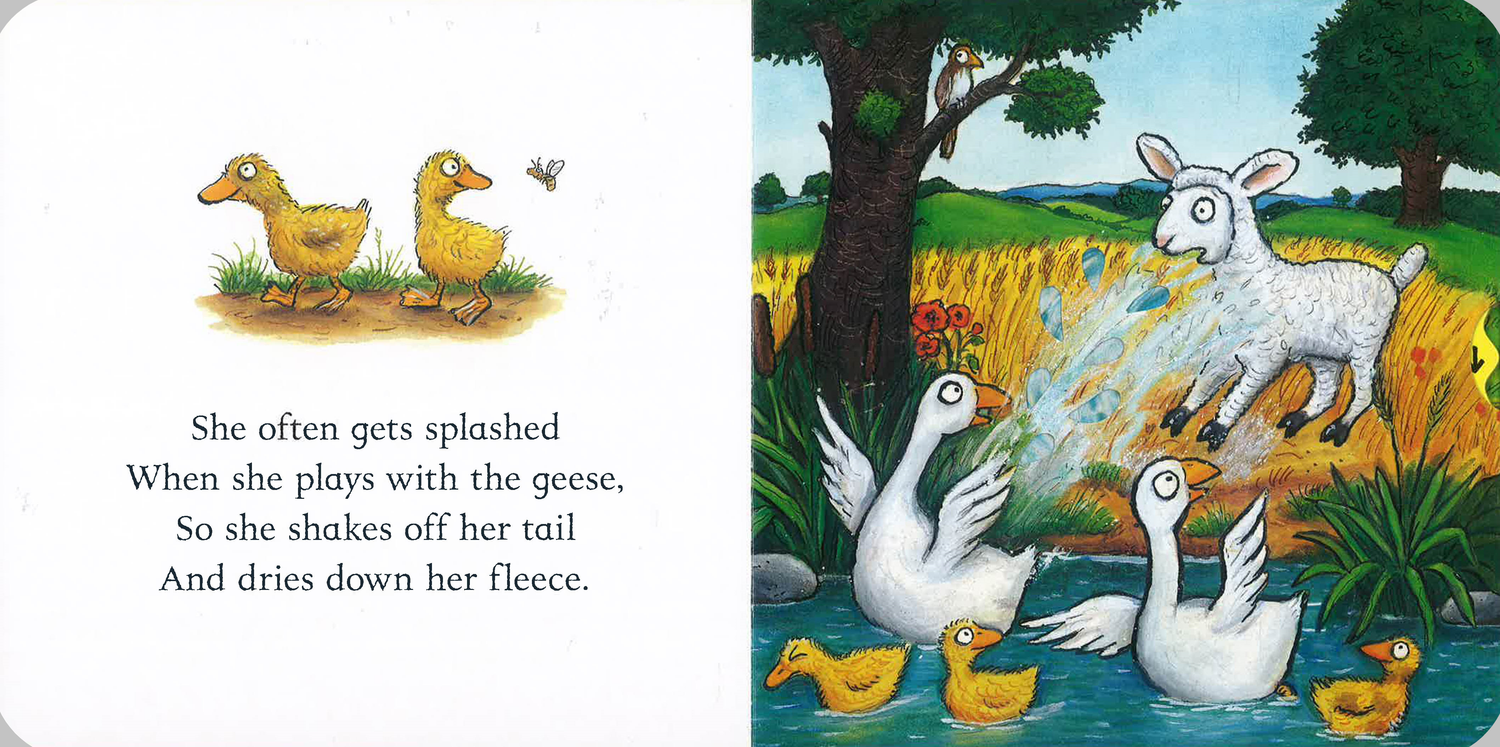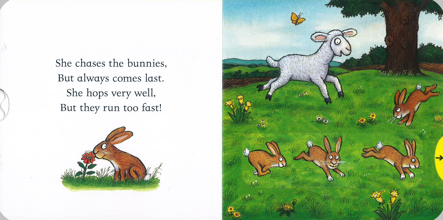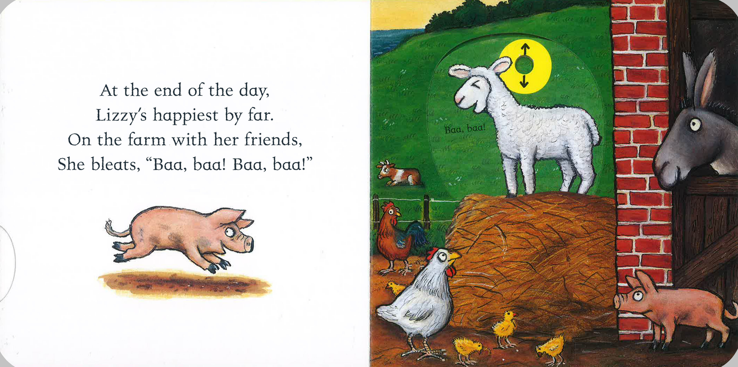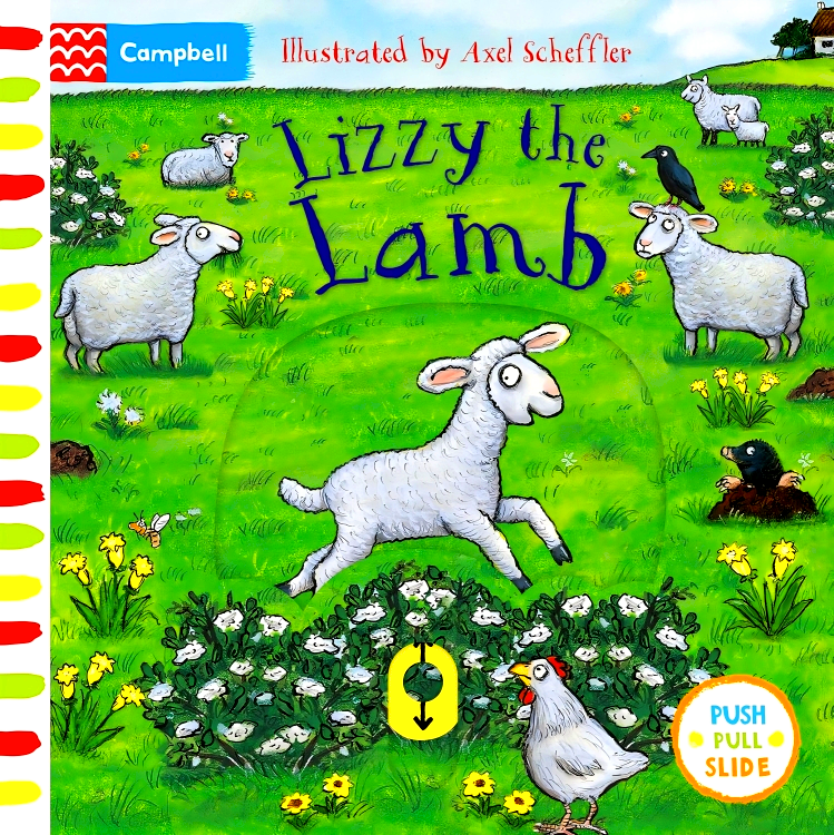 Little ones can join in the fun with Lizzy the Lamb by pulling out the sliders, pushing up the tabs and making lots of noise down in the fields!